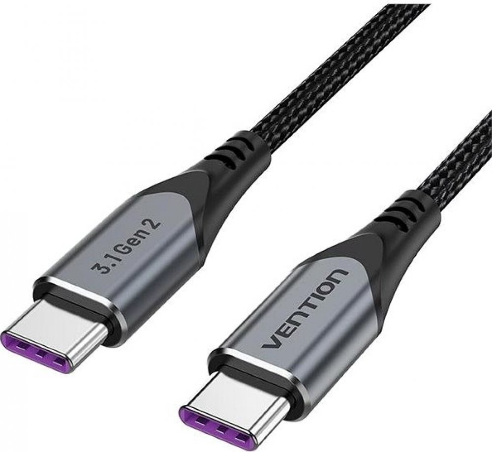 "Kabel USB-C na USB-C 100W Vention TAHHF 5A 1m USB 3.1 Gen2 4k (šedý).