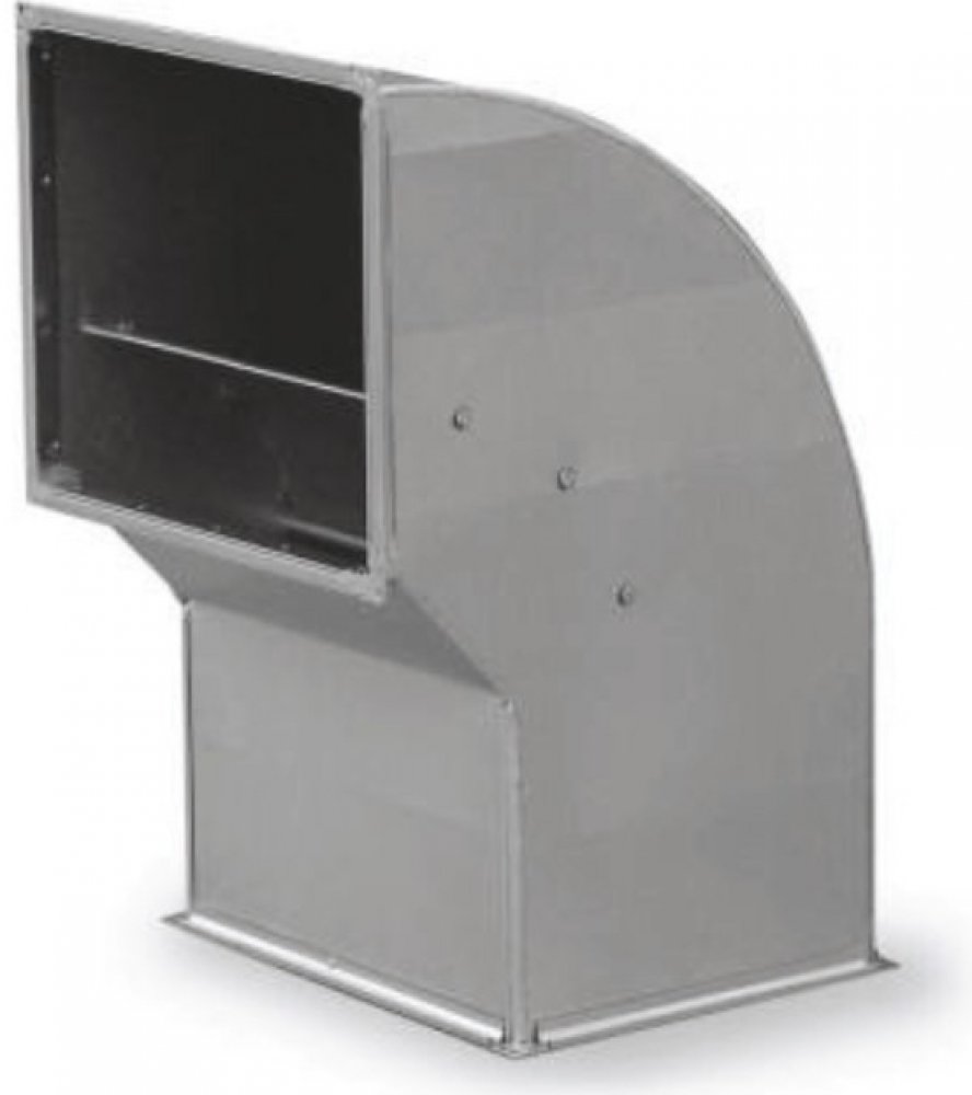 Čtyřhranný symetrický 90° oblouk s rozměrem 400 x 400 mm určený pro hranaté vzduchotechnické potrubí (trouby). Potrubí je vyrobeno z pozinkovaného ocelového plechu tloušťky 0,6 mm. Potrubí je určeno pro přepravu čistého vzduchu mezi aktivními VZT prvky a koncovými prvky. Využívá se především v komerčních a průmyslových objektech a všude tam, kde není možné umístit kruhové potrubí.