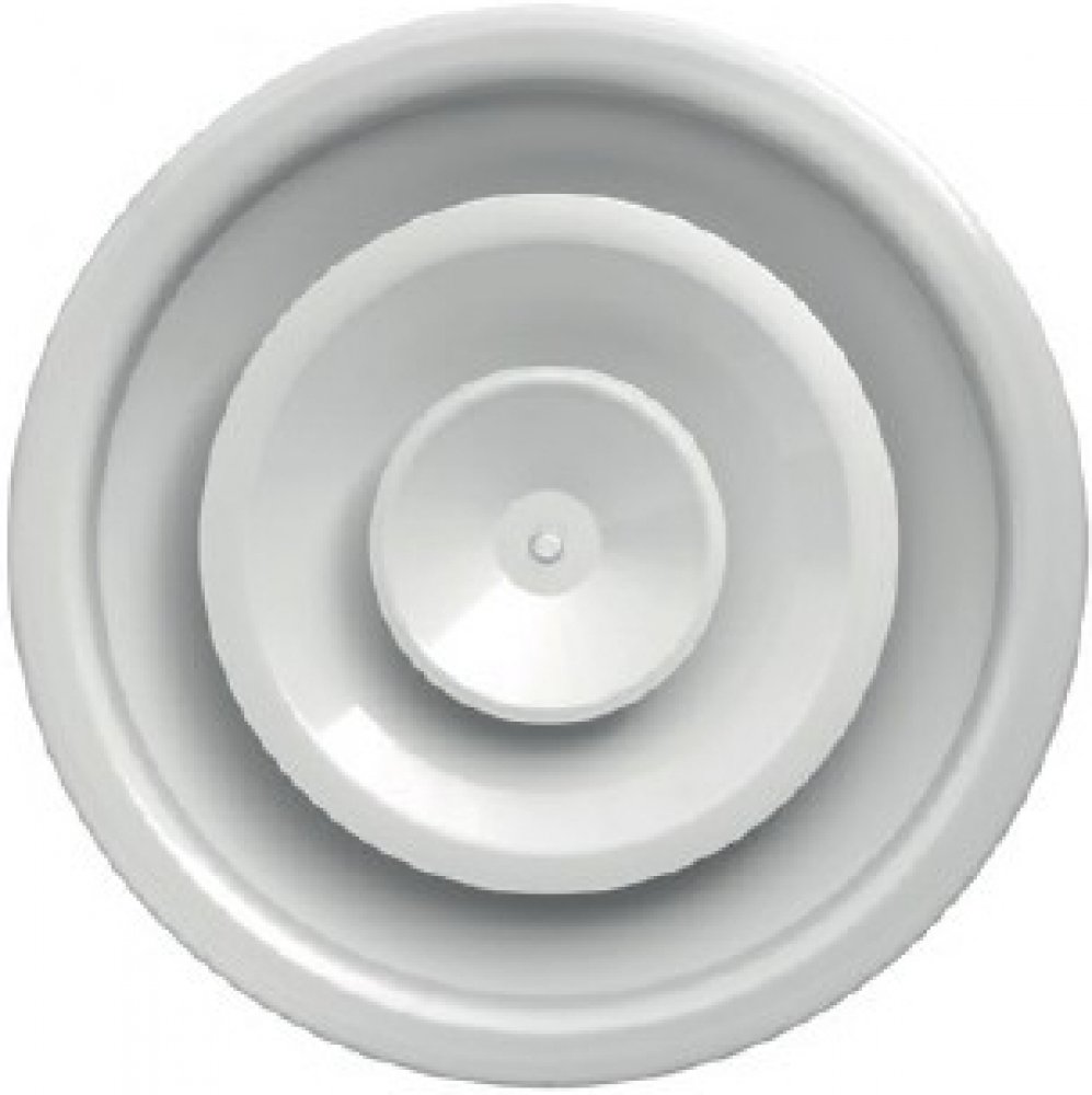 Kruhový anemostat s nastavitelným středovým kuželem. Anemostat lze dodat také v provedení se čtvercovou deskou určenou pro kazetové stropy (typ S).