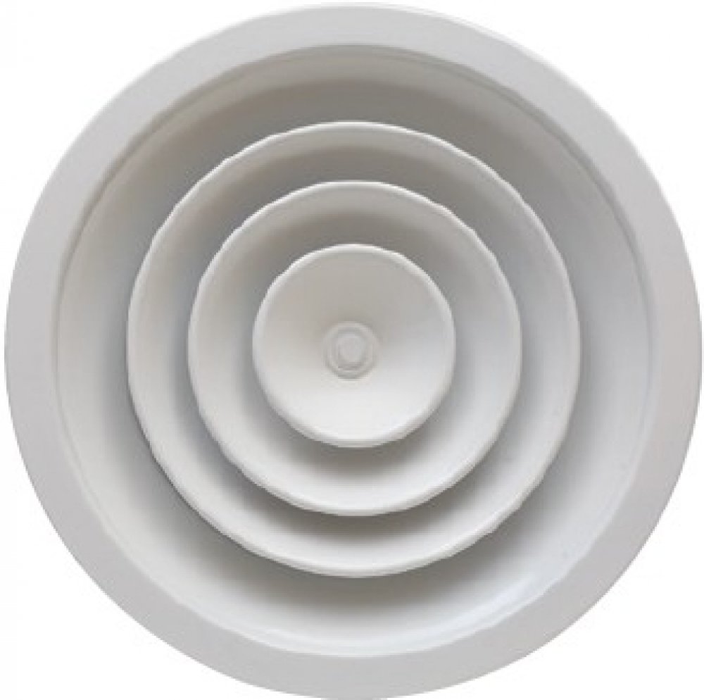 Kruhové anemostaty s pevným kuželem, odstranitelným středovým elementem a se zpětnou klapkou.