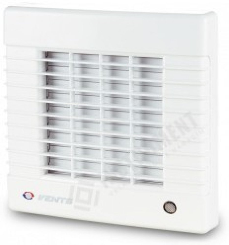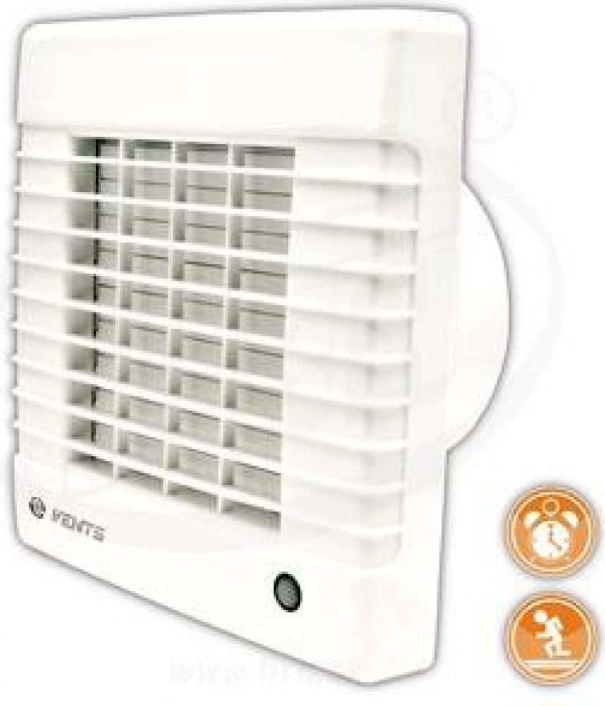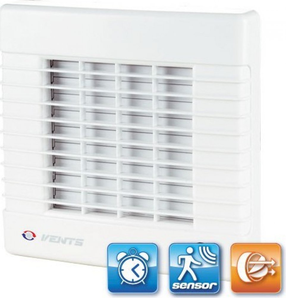 Ventilátor Vents 100 MATP s automatickou žaluzií, časovým doběhem, čidlem pohybu, o průměru 100 mm, pro malé a středně velké místnosti, hranatý design.