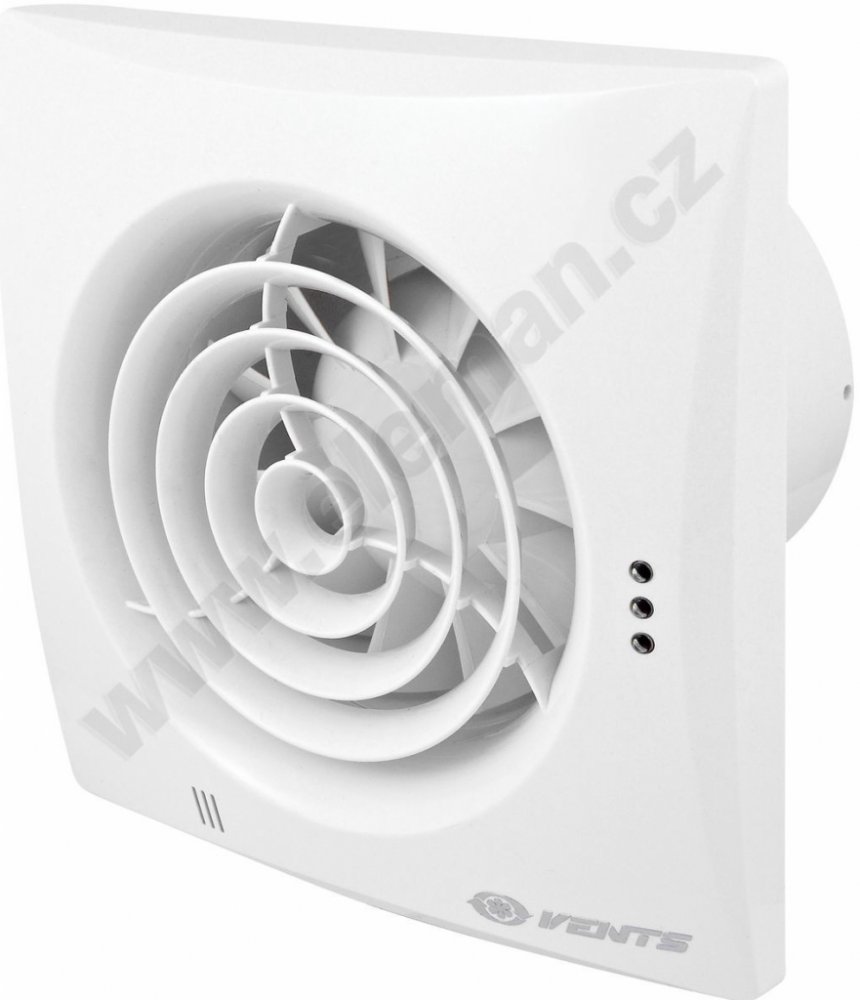 Domovní axiální ventilátory Vents QUIET jsou určeny k odsávání vzduchu z menších bytových a nebytových prostor jako jsou koupelny, toalety, kuchyně, prodejny, kanceláře a podobně. Poskytují maximální průtok vzduchu v kombinaci s nízkou hlučností. Vzhledem ke svým technickým parametrům se doporučuje ventilátory používat v kombinaci s kratšími vzduchotechnickými potrubími s nižší tlakovou ztrátou popřípadě k odsávání přímo přes stěnu. Všechny typy jsou vybaveny speciální zpětnou klapkou, která zabraňuje zpětnému proudění vzduchu. Vysoké krytí IP 45 je ideální pro montáž do koupelny. Kompletní specifikace: Domovní axiální ventilátor 100 QUIET, nízká hlučnost 25dB, bal. 1 ks, pro potrubí 100mm, bílý, bez přídavných funkcí. Ventilátor do koupelny, na WC apod., O 100 mm Montáž: Ventilátor se montuje na zeď. Součástí balení je i potřebný montážní materiál. Použití: Ventilátor doporučujeme používat pro odtah vzduchu okolo 3 metrů. Pohonná jednotka: Motor tohoto ventilátoru je osazen kuličkovými ložisky a jeho životnost je 30 000 hodin. Zpětná klapka: Tento typ ventilátoru má již zabudovanou slídovou zpětnou klapku, která slouží k zabránění vrácení nežádoucích pachů zpět do místnosti.