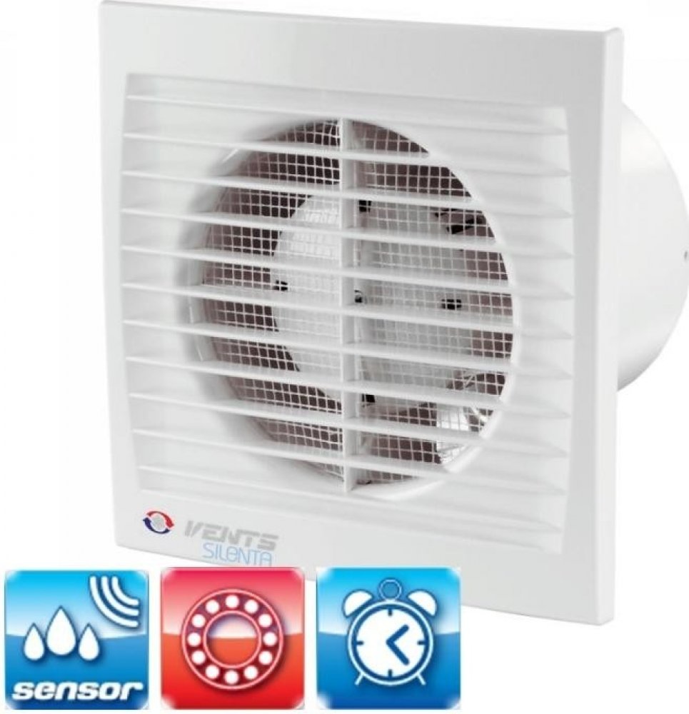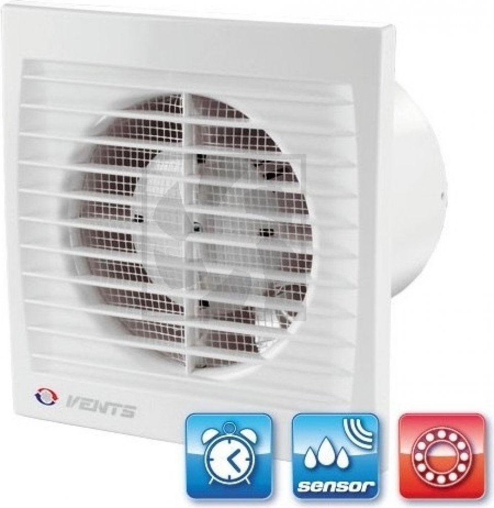 Ventilátor Vents 125 STHL o průměru 125 mm s časovým doběhem, čidlem vlhkosti a kuličkovými ložisky, pro malé a středně velké místnosti, klasický design.