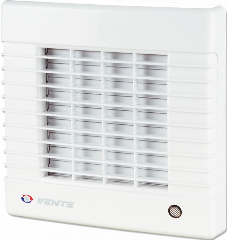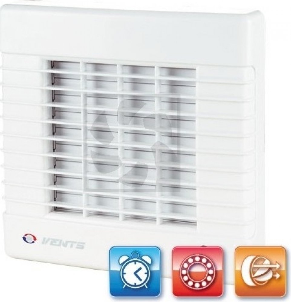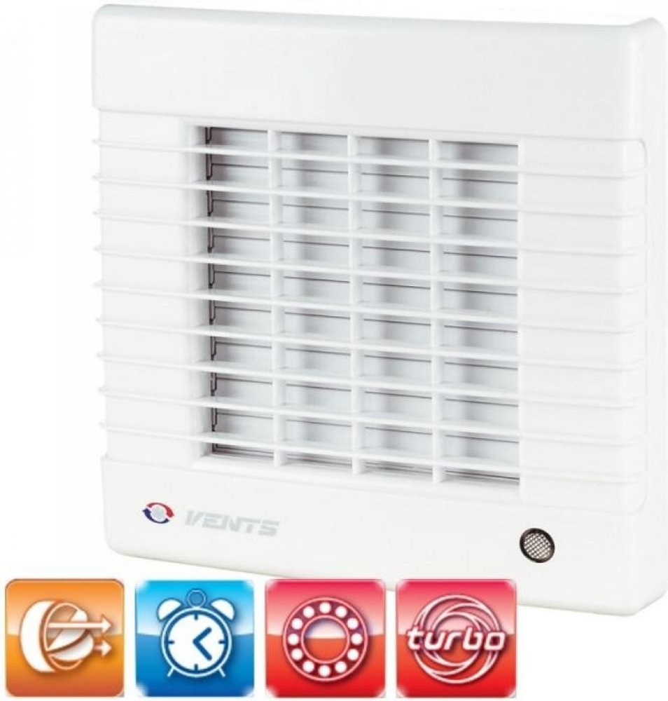 Ventilátor Vents 150 MATL Turbo s automatickou žaluzií, časovým doběhem, silnějším motorem a kuličkovými ložisky, o průměru 150 mm, pro malé a středně velké místnosti, hranatý design.