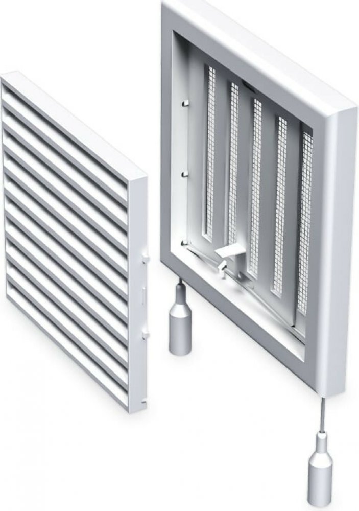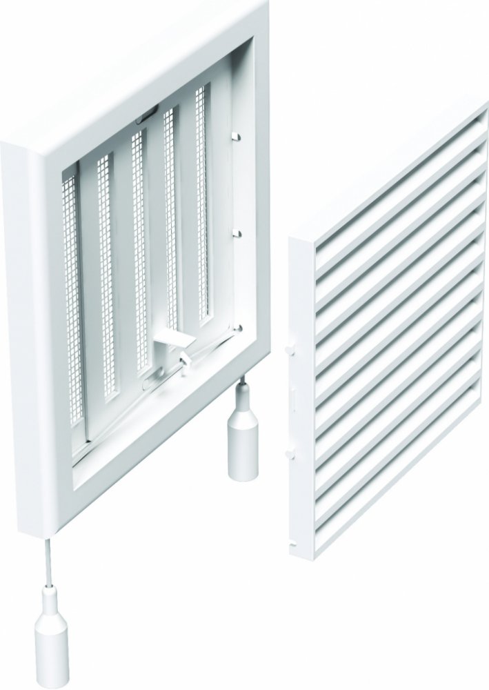 Použití : Kombinovaná plastová mřížka pro kombinaci větrání a nasávání s regulovatelnou žaluzií, uzavíratelná. Ventilační mřížka s pevnými skloněnými horizontálními žaluziemi. Pro průmyslové, obchodní, domácí větrání, vytápění a klimatizaci. Pro vnitřní a vnější montáž. Uchycení pomocí šroubů na omítku. Stabilní vůči nepříznivým atmosférickým vlivům a teplotě, jednoduchost a pohodlí instalace, snadné čištění. Mřížka je vybavena síťkou proti hmyzu. Účinné manuální ovládání mřížky pomocí páčky nebo provázku. Vnitřní strana mřížky se snadno odnímatelnými zámky.