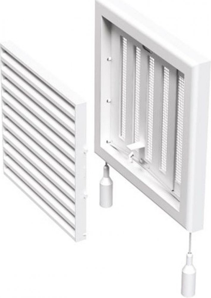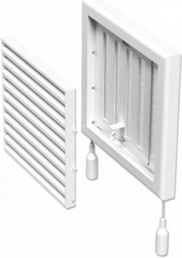 Mřížka, větrací, s, regulací, regulovatelnou, žaluzií, uzavíratelná, zavírací, plastová, plast, pvc, a, ventilační, vzduchotechnická, se, síťkou, síťovinou, na, fasádu, omítku, fasádní, zeď, nástěnná, vnitřní, venkovní, nasávání, vytápění, nasávací, větrání, odvětrání, odvětrávací, 18,7 x 18,7, cm,