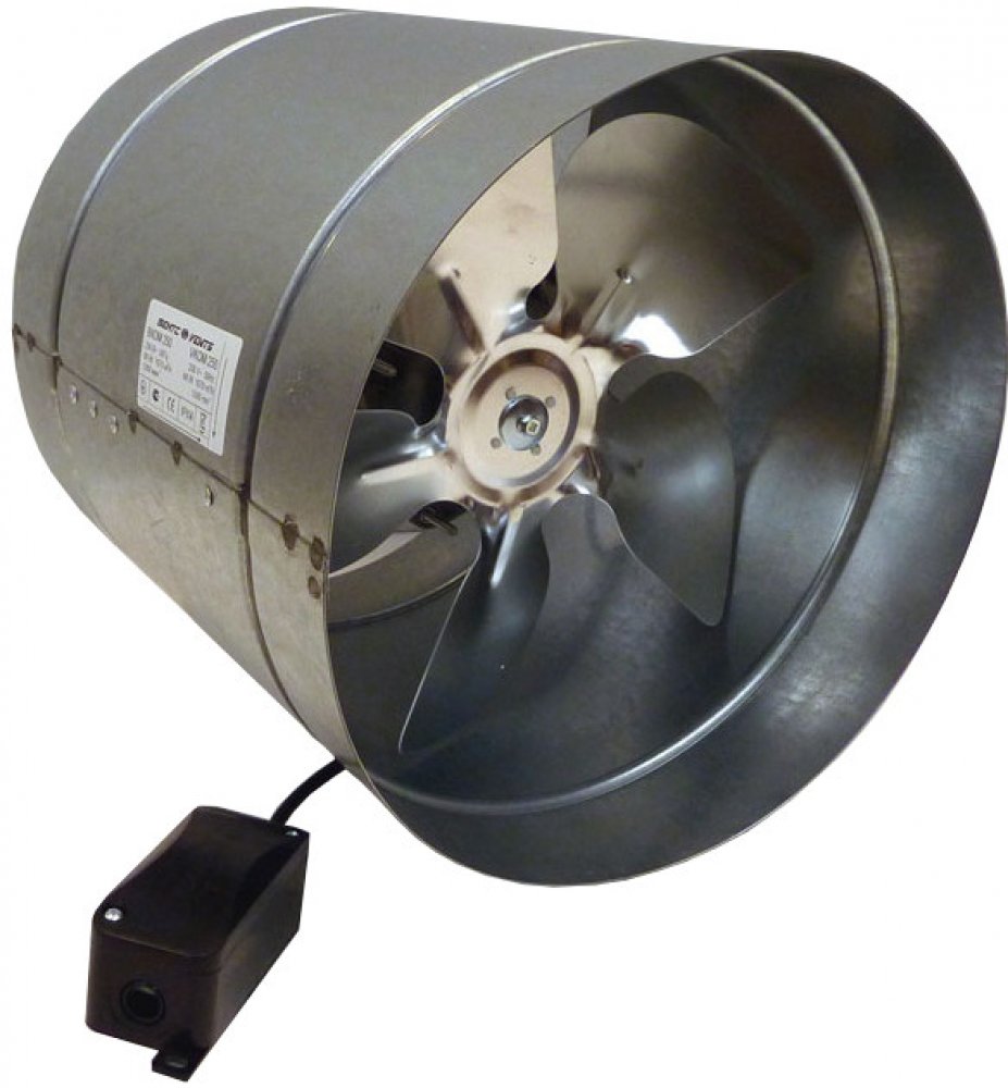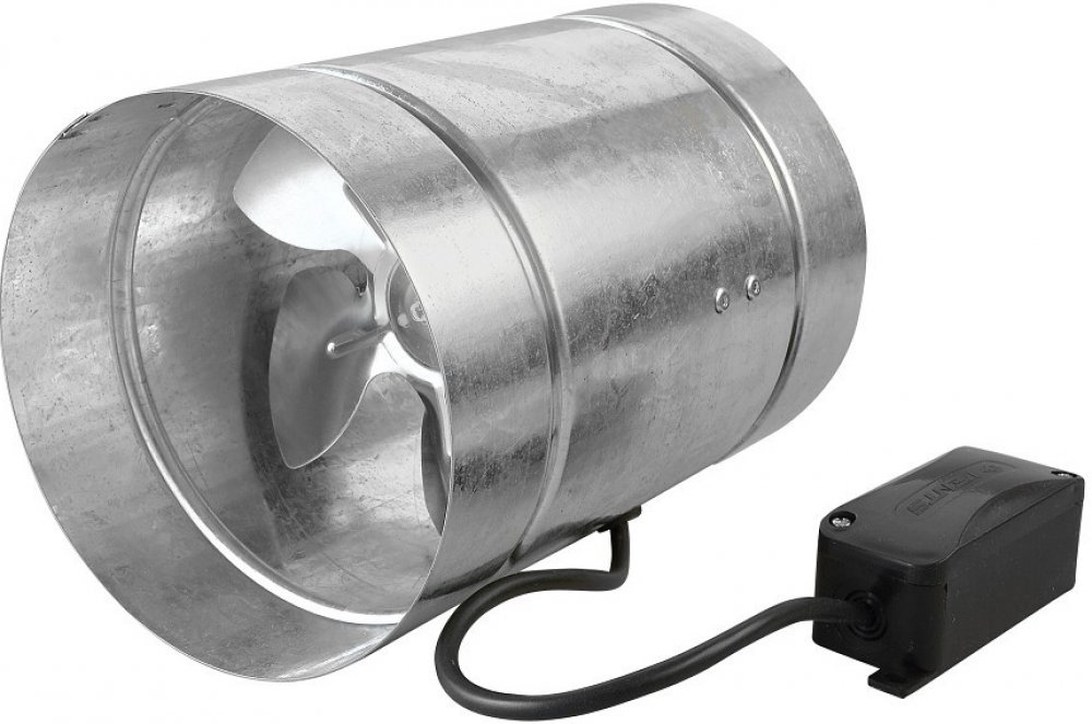 Ventilátor se namontuje do kulatého potrubí tak, aby osa motoru byla ve vodorovné poloze.