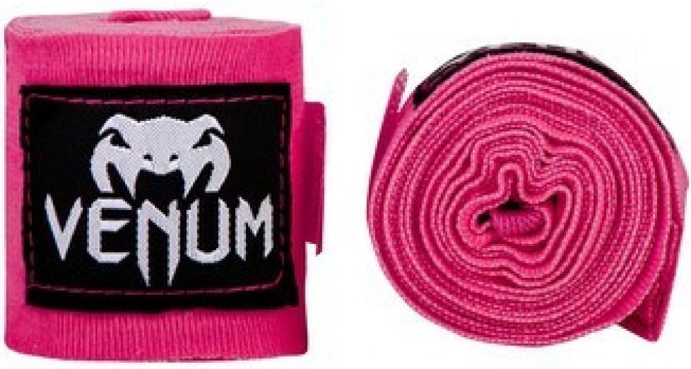 Boxerské bandáže značky VENUM KONTACT - 4,5 m - růžovéNaše boxerské bandáže na ruce Kontact, které jsou nezbytným doplňkem pro všechny boxery, jsou vyrobeny z elastické bavlny, která zajišťuje kvalitní oporu a ochranu. Ergonomický pásek na palec usnadňuje práci a bandáže se zapínají na háčky a smyčky, které zaručují dokonalé a pohodlné nošení. Bandáže VENUM jsou dlouhé 4,5 metru.Černá nášivka s logem VENUMVENUM