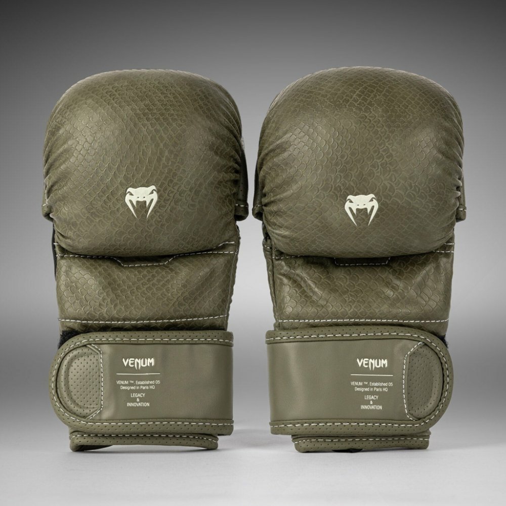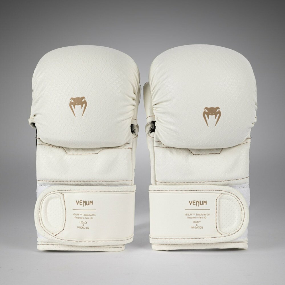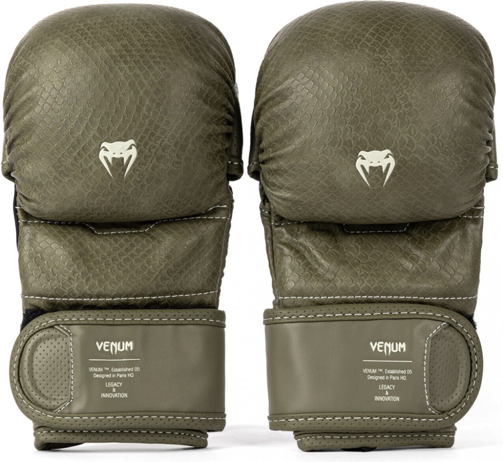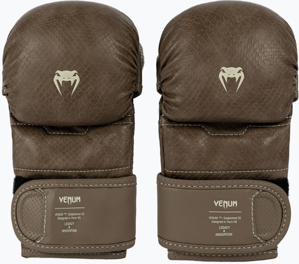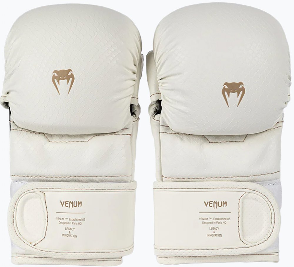 Vysoce kvalitní vstřikovaná pěna pohlcuje nárazy každého úderu pro optimální ochran. Sparingové rukavice jsou vyrobeny z kůže Skintex pro vynikající odolnost. Neoprenový vnitřek umožňuje odpařování vlhkosti a pevný úchop při grapplingu. Béžové prošívání kopíruje linie anatomické konstrukce rukavice a vytváří tak jemný kontrastní efekt. - 100% kůže Skintex- Vhodné pro MMA zápas- Běžné používání: Pravidelné používání: 2-4x týdně- Vysoce kvalitní vstřikovaná pěna- Mikroperforace pro optimální ventilaci- Zesílená dlaň pro lepší pohodlí- Zesílené švy pro větší odolnost- Široké zapínání na háčky a smyčky pro dobrou podporu- Loga Venum. VENUM