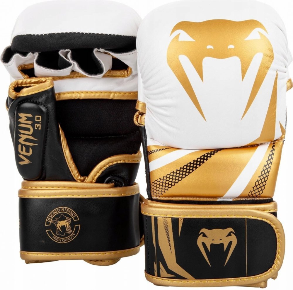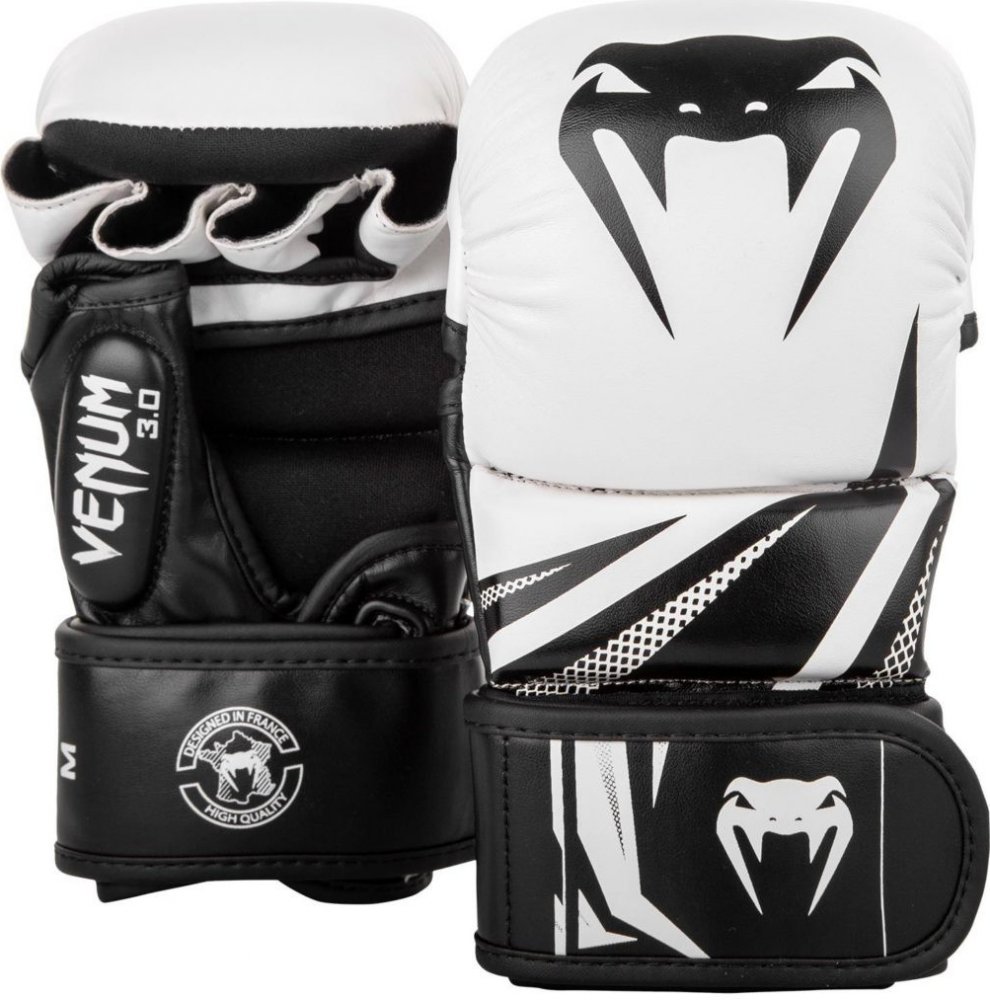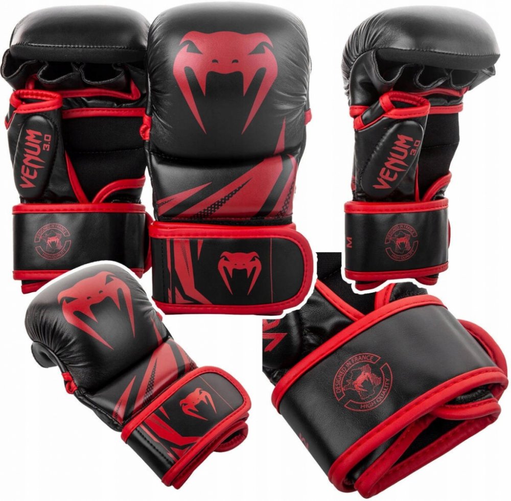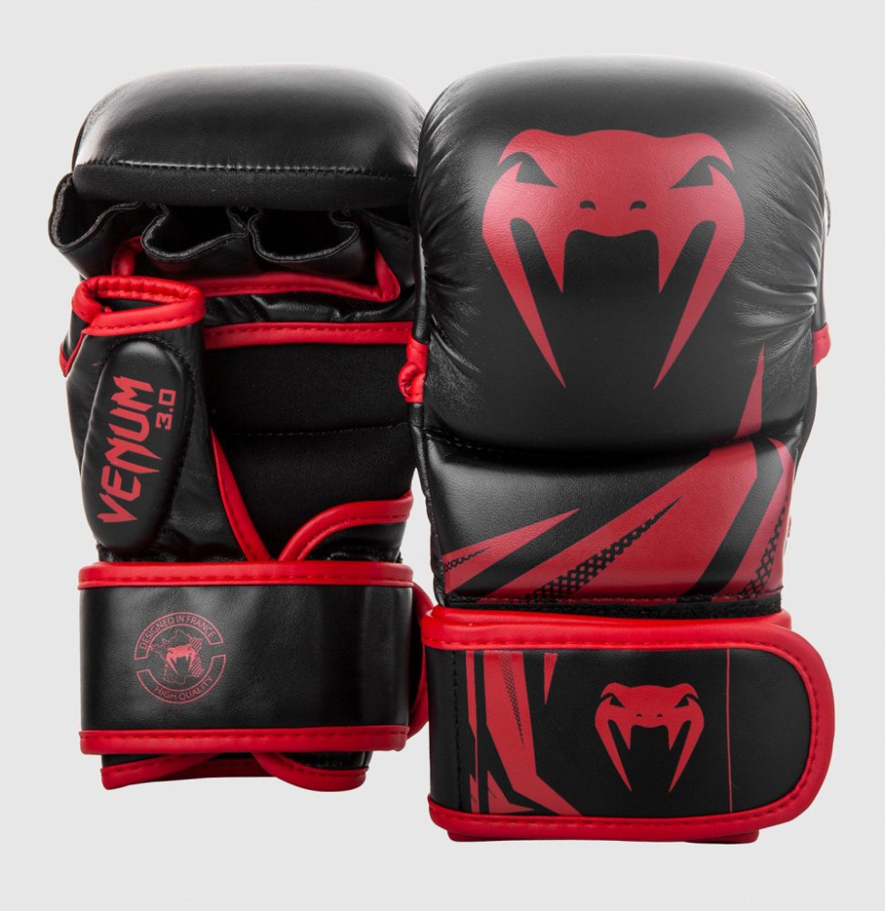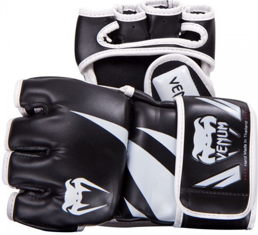 Rukavice na MMA od Venumu patří k tomu nejlepšímu co se na současném světovém trhu nachází. Přestože Venum je na trhu relativně krátkou dobu, svou kvalitou, designem a skvělým marketingem předběhl leckterého konkurenta. I na českém trhu se Venum velmi dobře uchytil a patři k velmi oblíbeným značkám. Venum Challenger rukavice jsou vyrobeny ze syntetického materiálu, jenž je zde vhodnější než přírodní kůže. Tento materiál je poddajný měkký, přesto velmi pevný. Rukavice neřežou na ruce a jejich používání je velmi pohodlné. Rukavice se zapínají pomocí dlouhého pásku na suchý zip. Pásek se obmotává dvakrát kolem zápěstí a tím mu poskytuje oporu a stabilitu. Palec rukavic je polstrovaný, stejně tak jak oblast, která kryje klouby a část prstů. Rukavice jsou lehké - cca 4oz. Díky své menší konstrukci se s nimi jednoduše provádí techniky v postoji i na zemi a nepřekáží ani v držení a grapplingu.