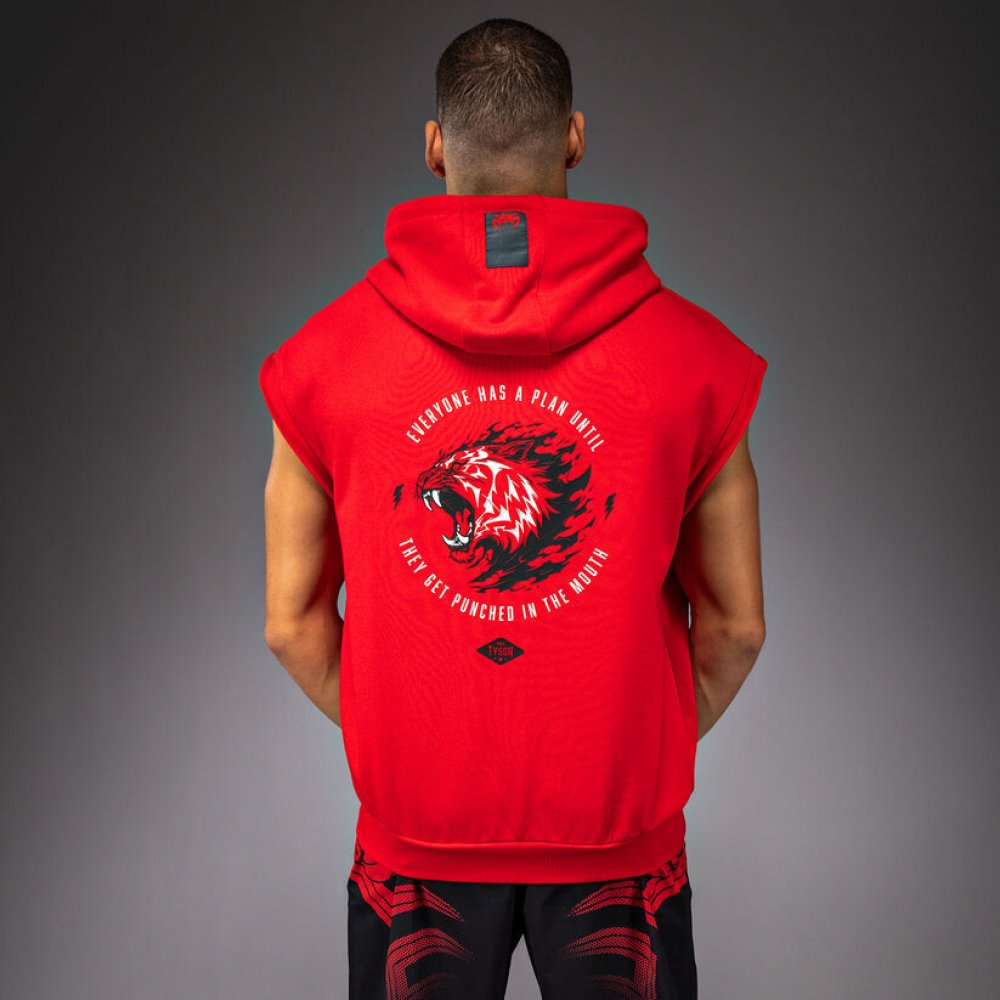 Široké průramky umožňují větší pohyblivost a ventilaci. Ideální pro boxerskou tělocvičnu. Mikina x Mike Tyson Tiger má kapuci a klokaní kapsu.- Materiál 1: 54,6 % bavlna, 45,4 % polyester - Materiál: 95 % bavlna, 5 % elastan - Regular fit ¨- Bez rukávů - Kapuce se stahovací šňůrkou - Klokaní kapsa - Logo Venum na hrudi - Prát v chladné vodě / 30 °C. - Prát s podobnými barvami. - Nesušit v sušičce. - Nebělit. VENUM