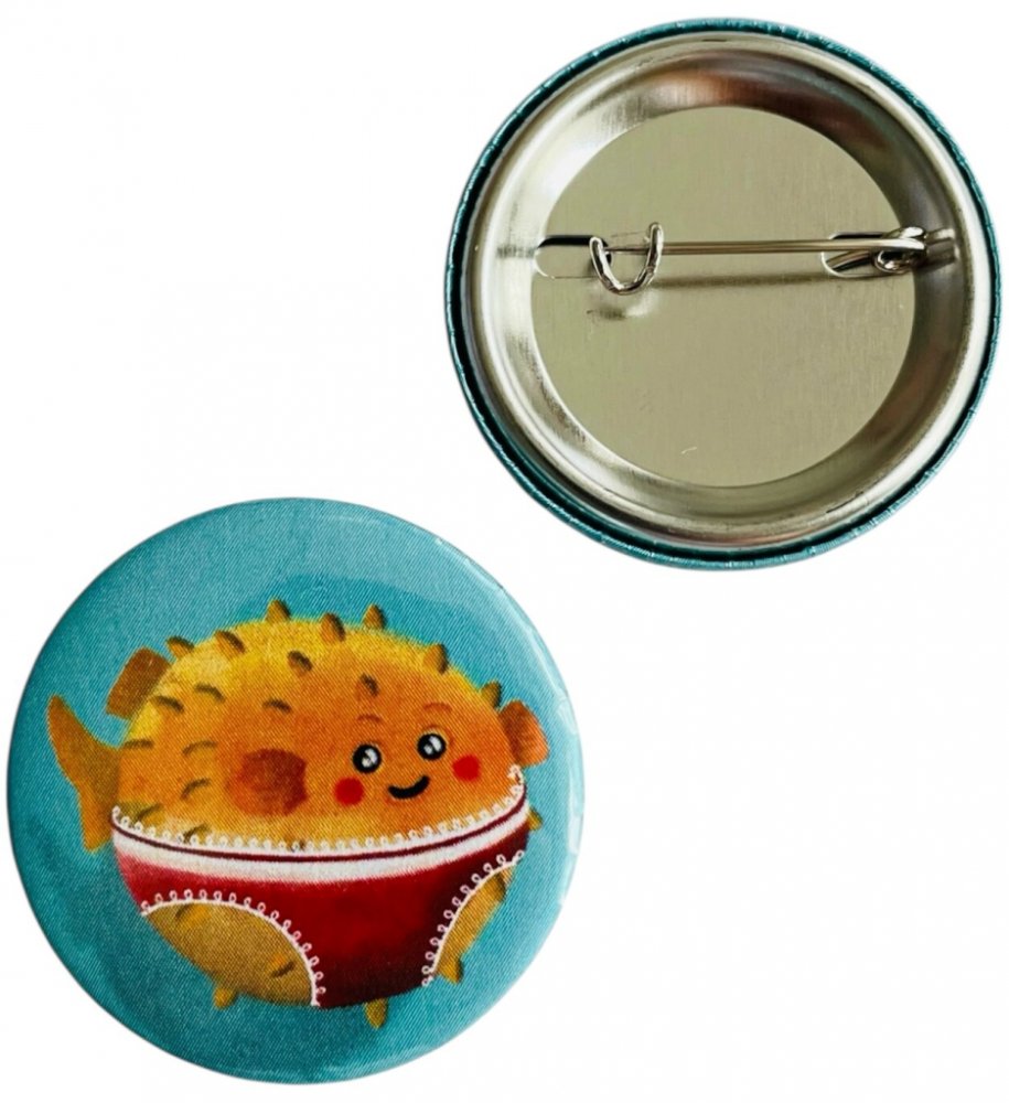 Placka „Nafukovací ryba Fugu Zuzanka“ vnese do vašeho dne pořádnou dávku hravosti. Usměvavá rybička s legračními červenými plavkami je originální autorskou ilustrací, která se stane ozdobou každého batohu, tašky nebo outfitu.