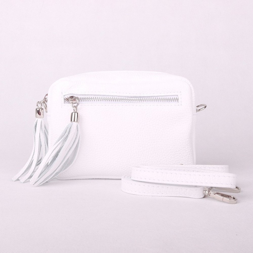 Malá kožená bílá dámská crossbody kabelka obdélníkové tvaru od výrobce Vera Pelle.