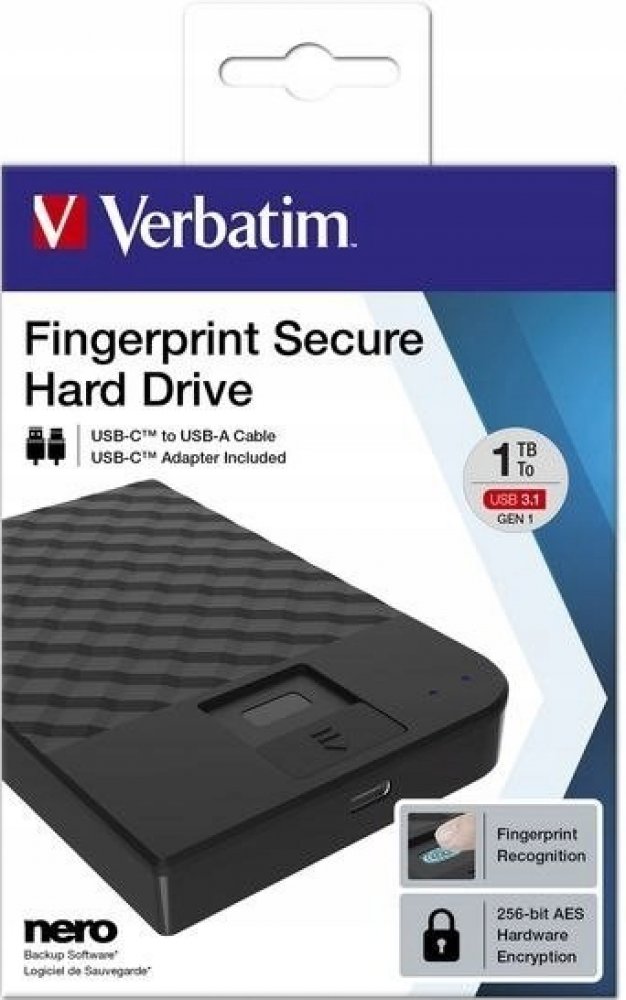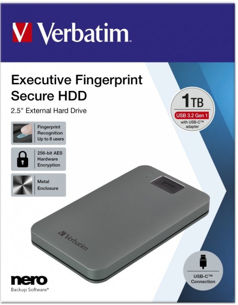 Pevný disk Verbatim Executive so zabezpečením odtlačkom prsta