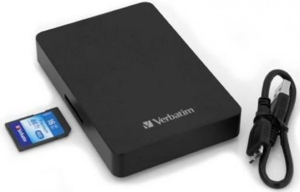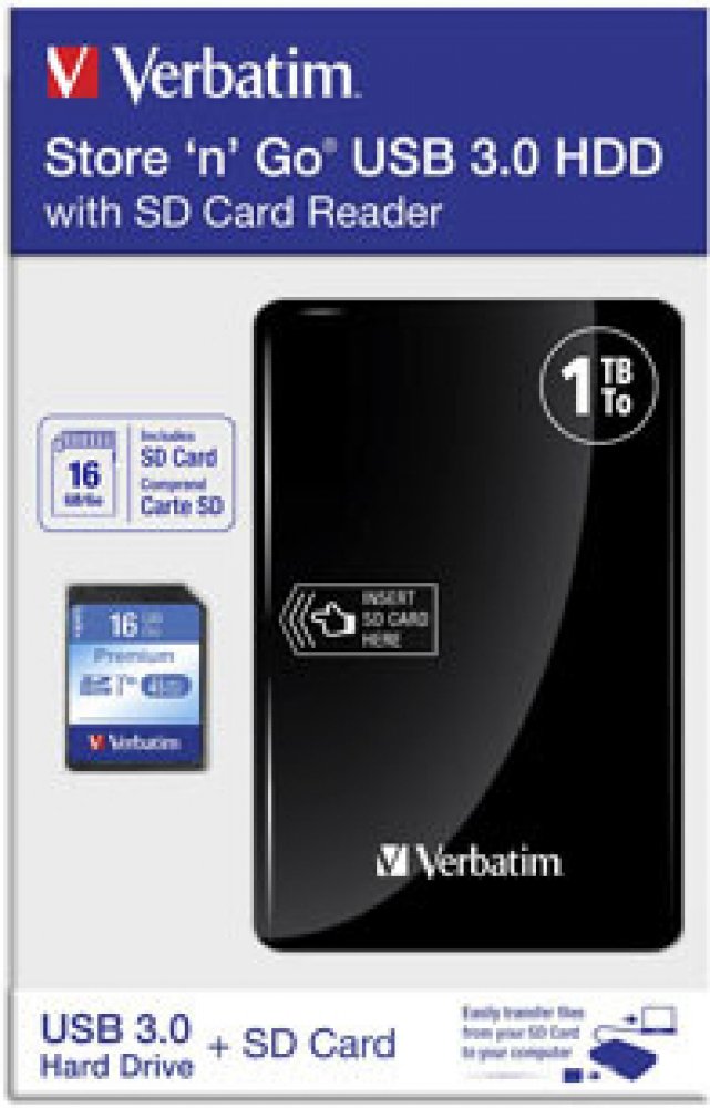 Verbatim pevný disk se čtečkou karet a kapacitou 1TB* Snadný přenos souborů z SD karty na pevný disk či do počítače* Vysokorychlostní velkokapacitní úložiště* Rychlé a bezpečné řešení pro rozšíření úložiště nebo zálohování souborů* USB 3.0 SuperSpeed – pro ultrarychlý přenos dat* USB plug and play (není nutné žádné další napájení)* Software Nero Backup* Softwarový spořič energie* SD karta je plně ...