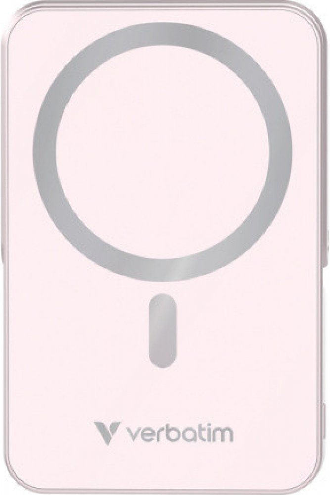 Verbatim Powerbanka s bezdrátovým nabíjením, 5V, 10 000 mAh, Magnetické připevnění S powerbankou Verbatim získáte spolehlivý a pohodlný způsob nabíjení na cestách. Díky kapacitě 10 000 mAh můžete pohodlně dobíjet svůj telefon nebo další zařízení, a to i bez nutnosti připojování kabelů, díky funkci bezdrátového nabíjení (5V). Tato powerbanka v elegantní růžové barvě je vybavena magnetickým připevněním, které zajišťuje stabilitu a bezpečné uchycení během nabíjení. Díky tomu je ideální pro každodenní použití, ať už jste doma, v kanceláři nebo na cestách. Hlavní vlastnosti: Kapacita 10 000 mAh pro opakované nabíjení vašich zařízení. Bezdrátové nabíjení s výstupem 5V – pohodlné nabíjení bez kabelů. Magnetické připevnění pro stabilní a bezpečné uchycení zařízení. Moderní a kompaktní design v růžové barvě. Ideální pro všechny zařízení kompatibilní s Qi standardem.