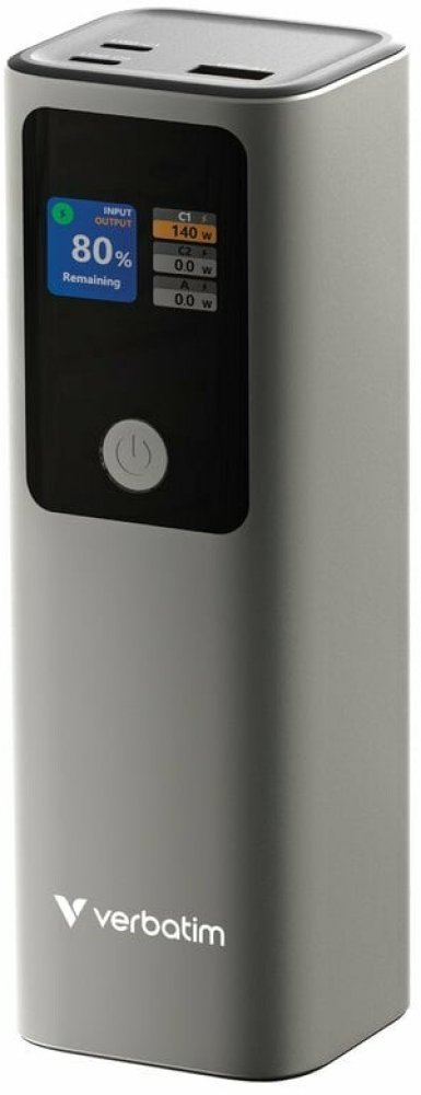 Verbatim Charge 'n' Go 27000mAh je profesionální powerbanka s mimořádnou kapacitou a výkonem, která je ideálním řešením pro uživatele vyžadující vysoký výkon a maximální spolehlivost při napájení notebooků, tabletů i smartphonů. S kapacitou 27000 mAh (99,9 Wh) a celkovým výstupním výkonem až 183 W zvládne rychle a efektivně nabíjet až tři zařízení současně.
