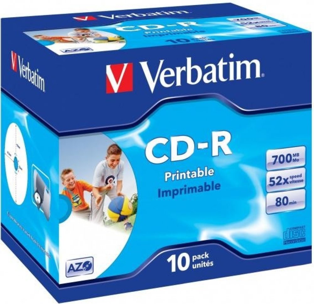 Verbatim 43325, DataLife PLUS, 10-pack, 700 Super Azo, 52x, 80min., CD-R, 12cm, Wide Printable, jewel box, Standard, pro archivaci