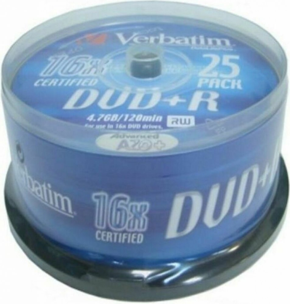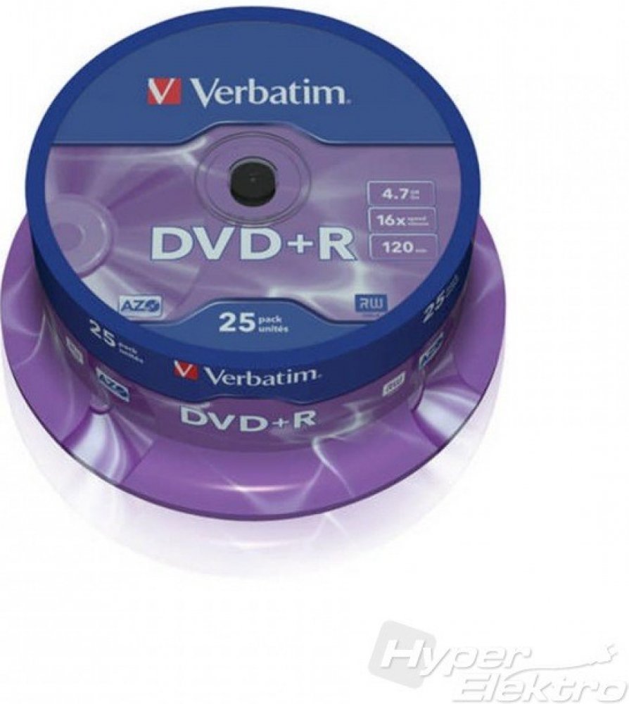 Verbatim DVD+R 4,7GB 16x, Advanced AZO+, cakebox, 25ks (43500)