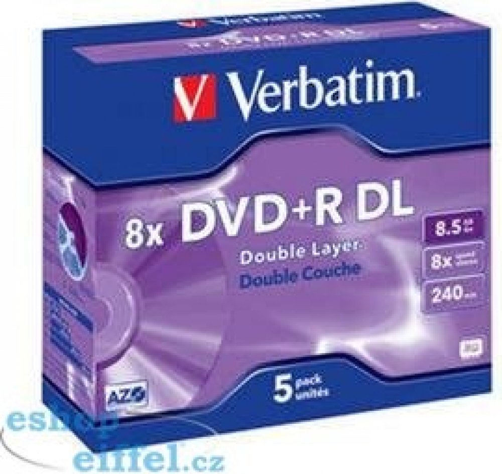 Verbatim DVD+R DL, 8,5GB 8x, AZO, jewel, 5ks (43541)