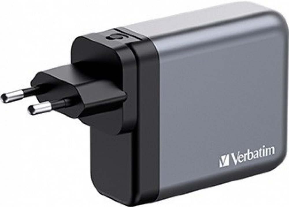 Verbatim GaN nabíječka do sítě o výkonu 140 W v designu, který se vejde do dlaně, kombinuje dva porty USB-C PD 140 W, jeden port USB-C PD 20 W a jeden port USB-A QC 3.0. Ideální do kanceláře, pro domácí použití nebo na cesty, kde dodá energii vašemu notebooku, tabletu, chytrému telefonu, herním a mnoha dalším zařízením.
