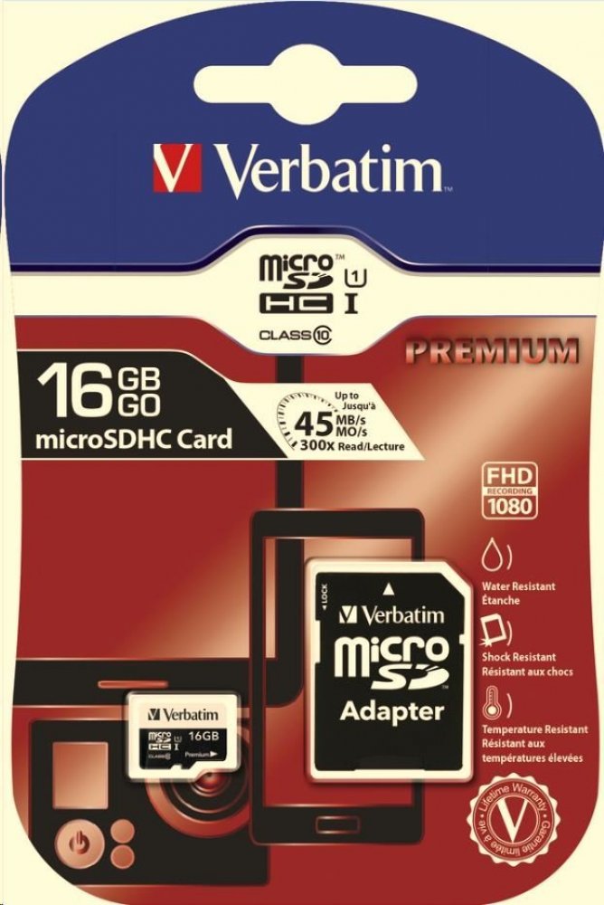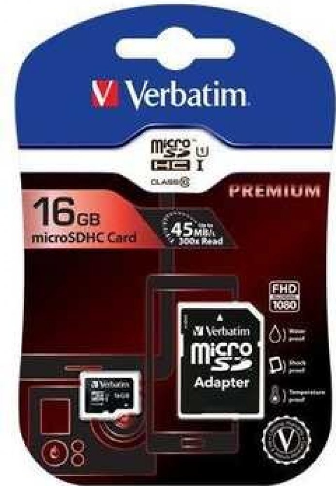 16 GB Verbatim microSD 10 MB/s 10 MB/s Class 10 UHS-I U1 V10