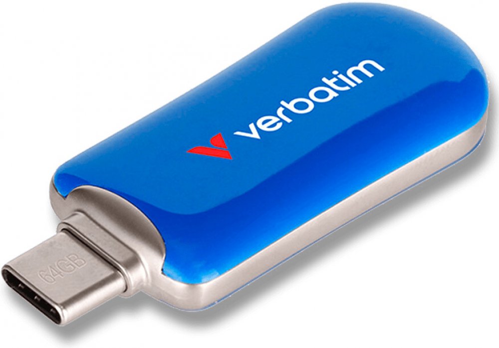 Verbatim 64 GB USB 3.2 Gen 1 (USB 3.0) 100 MB/s USB-C s jedním konektorem rychlé 9 g modré 8 mm 49 mm 21 mm