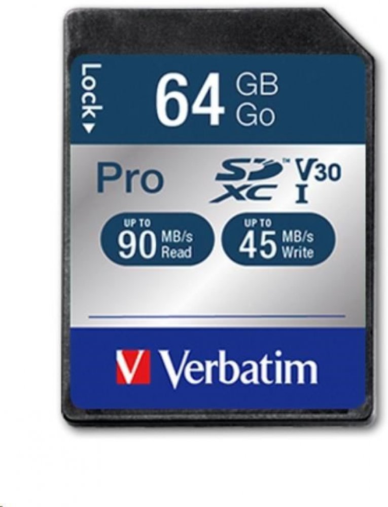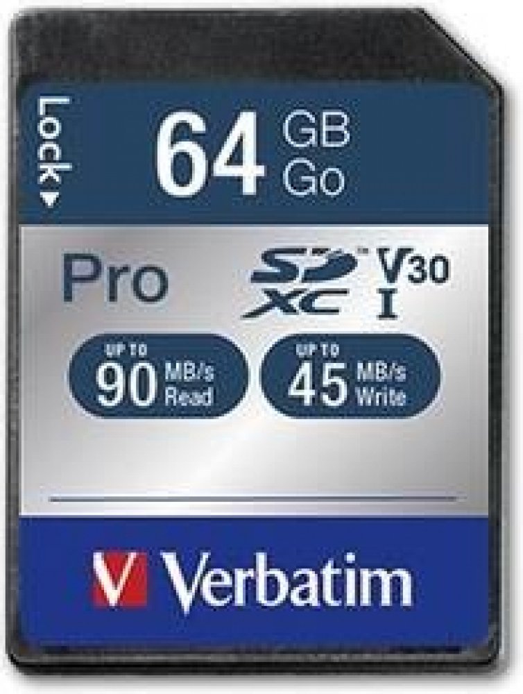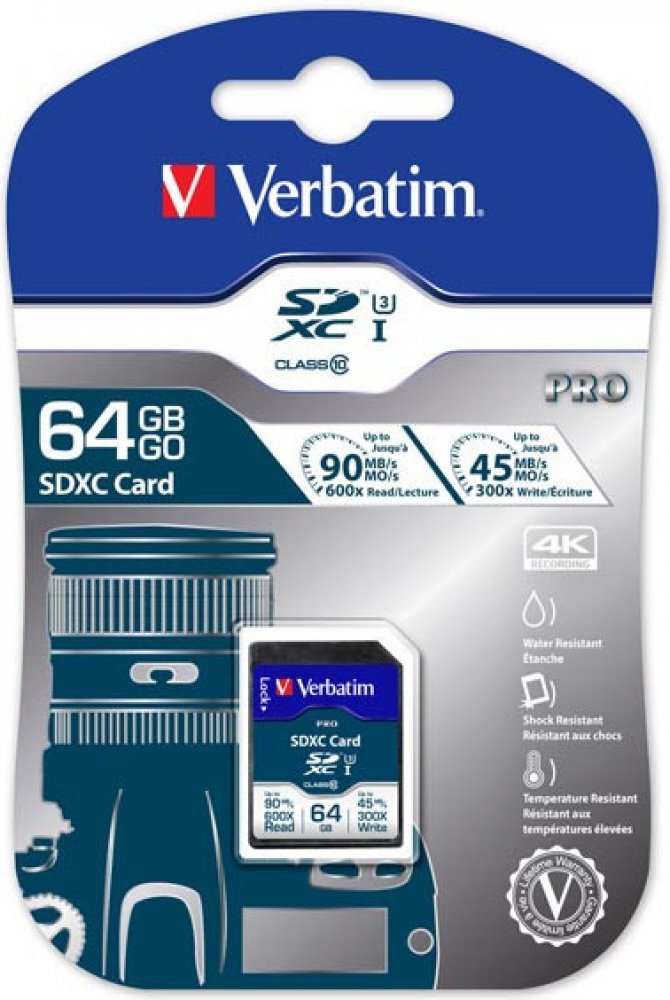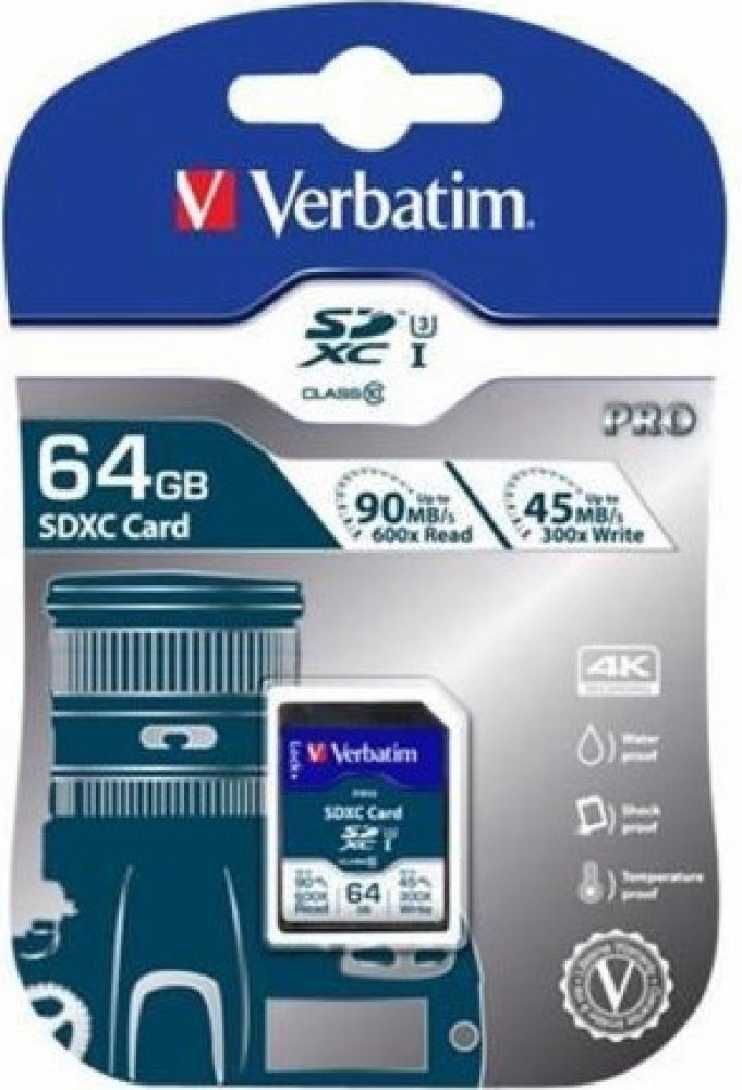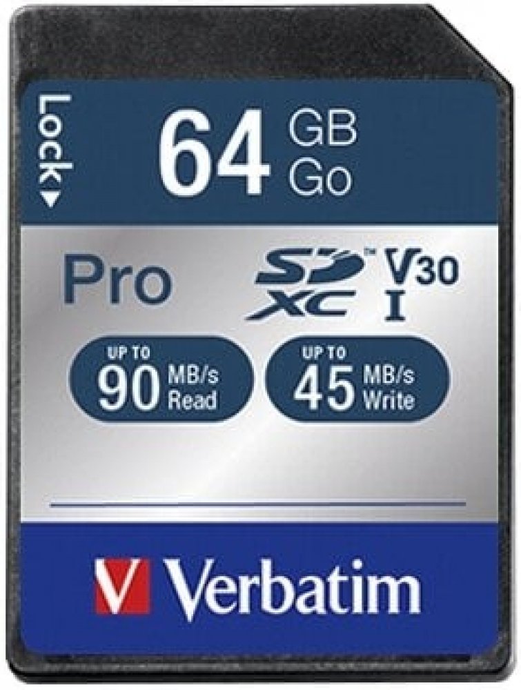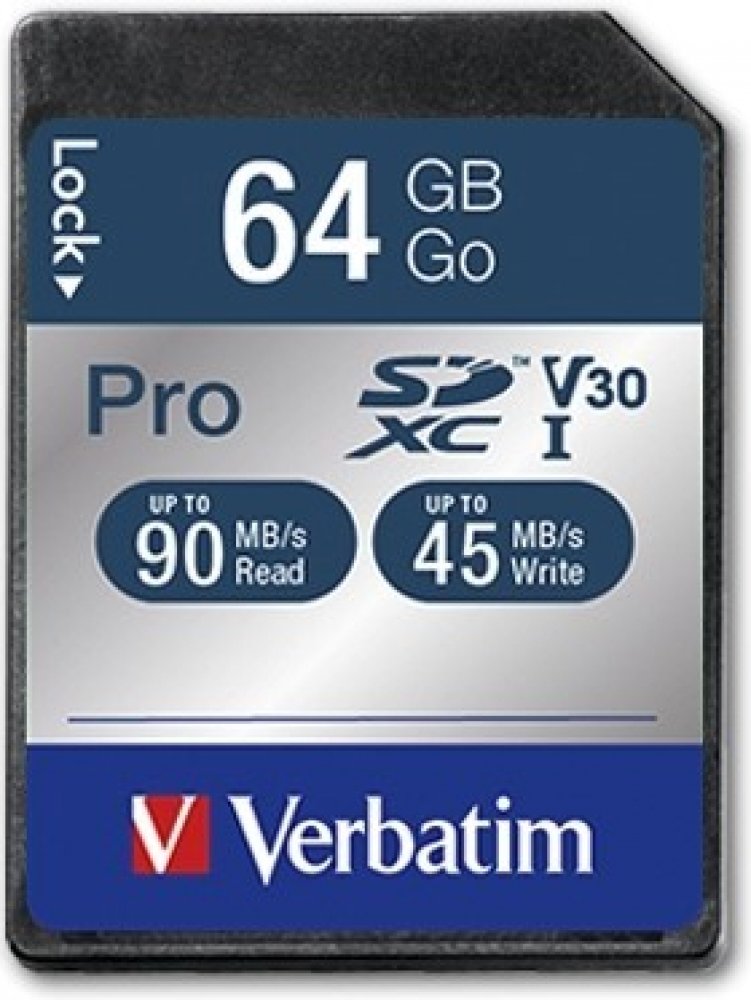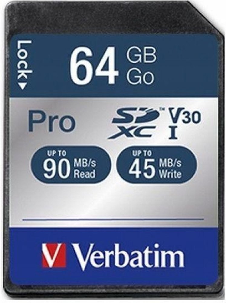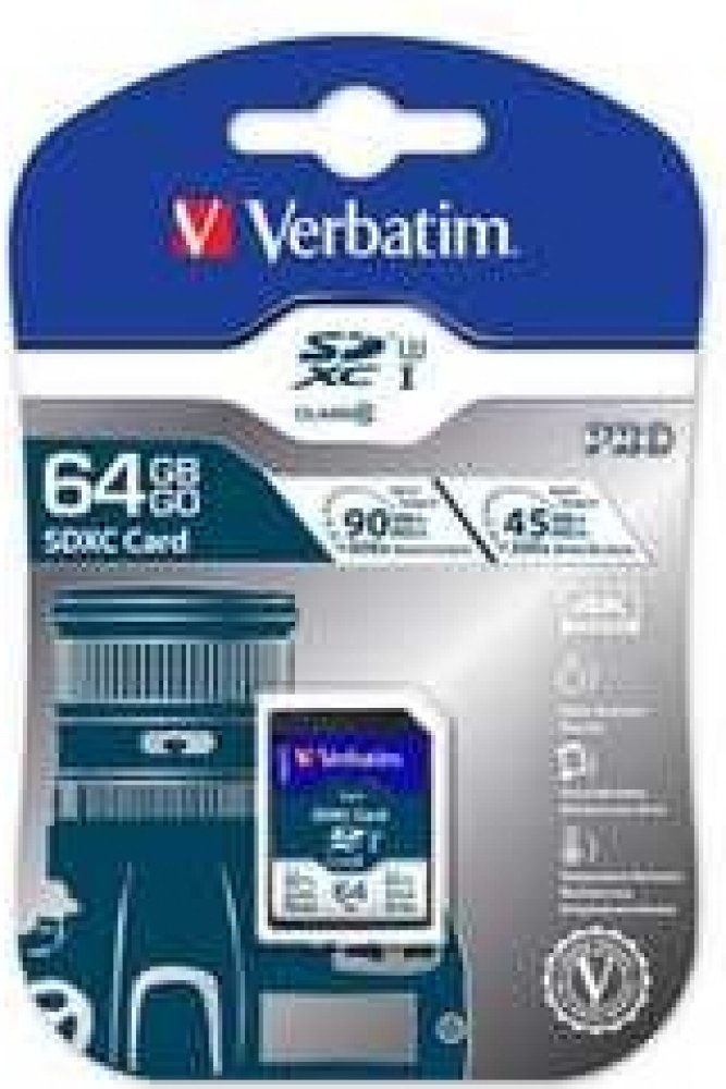 64 GB Verbatim SDXC 90 MB/s 45 MB/s Class 10 UHS-I U3 V30