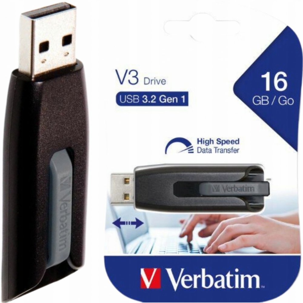 Verbatim 16 GB USB 3.2 Gen 1 (USB 3.0) 60 MB/s 12 MB/s USB-A černé 58 x 20 x 11 mm 10 g