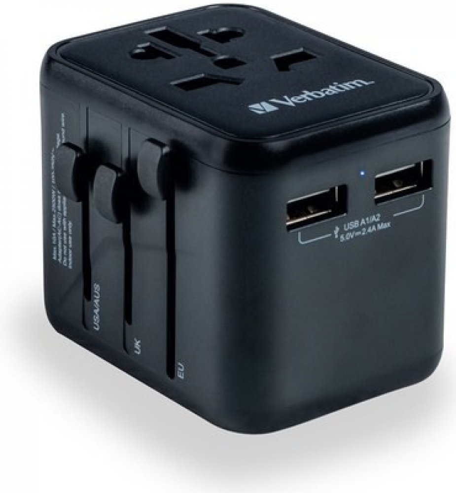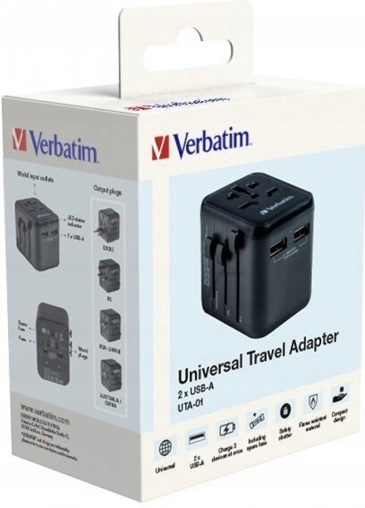 Cestovní adaptér značky Verbatim nabízí praktickou pomůcku pro cestování po celém světě. Díky integrovaným nastavitelným konektorům si můžete být jisti, že váš adaptér bude fungovat bez problémů, ať už cestujete kamkoli. Adaptér je vybaven dvěma USB-A porty, které umožňují nabíjení dvou zařízení současně. Můžete tak dobíjet svůj smartphone, tablet, power banku či jiné USB zařízení, aniž byste potřebovali další adaptéry či rozbočovače. Adaptér je vybaven integrovanými ochranami proti přepětí, přehřátí a zkratu, což zajišťuje bezpečnost vašich zařízení.