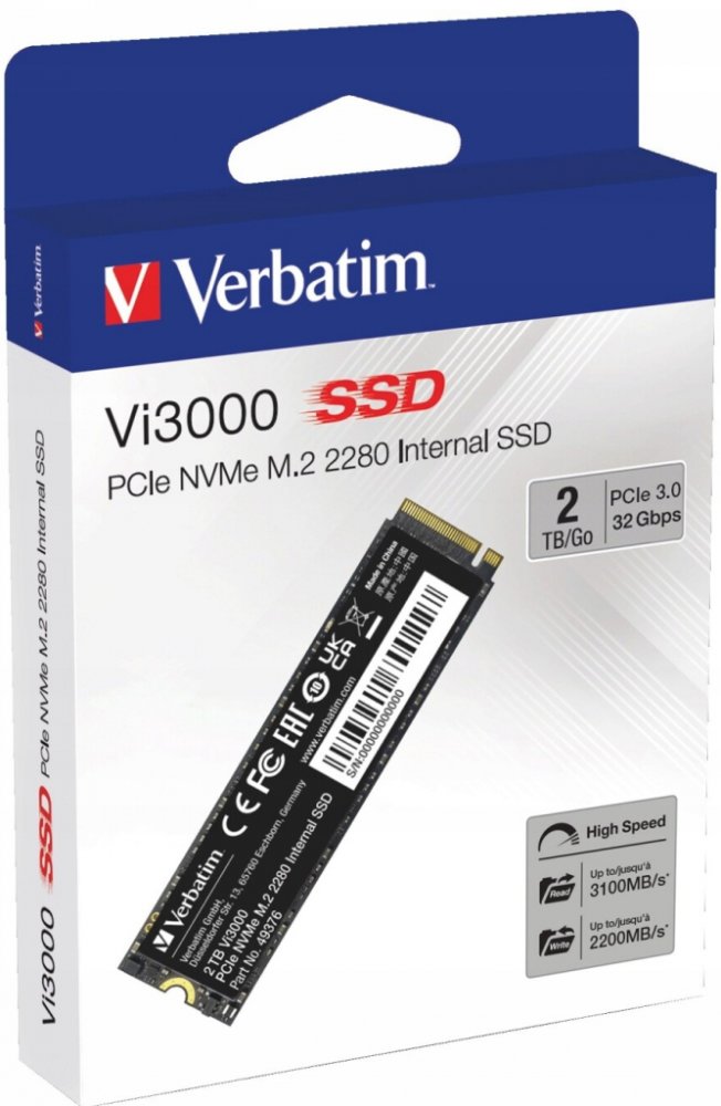 Verbatim 2000 GB M.2 PCIe 3.0 x4 NVMe TLC pro vysoký výkon bez otáček s vysokou výdrží Vi3000 6.5 g M.2 2280 černé 3300 MB/s 3000 MB/s 150000 IOPS 110000 IOPS 1500.0 TBW 1000000 hodiny
