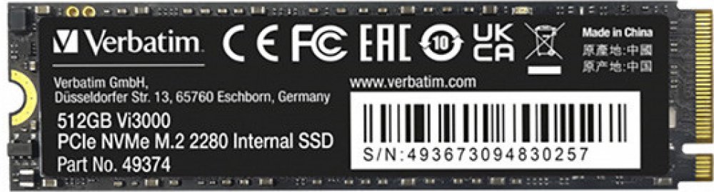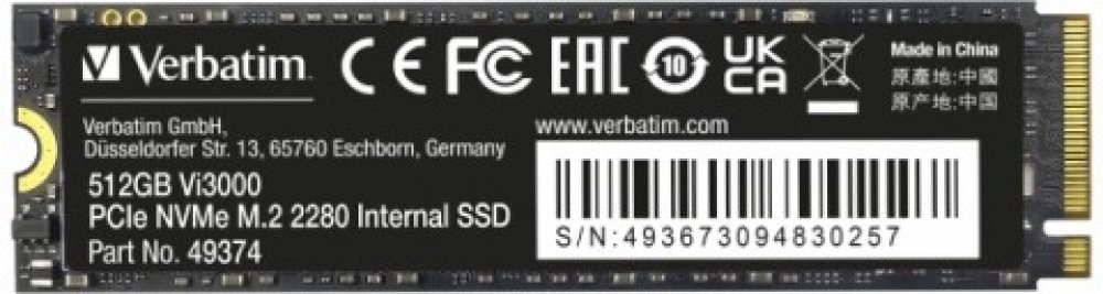 VERBATIM SSD Vi3000 Internal PCIe NVMe M.2 512GB