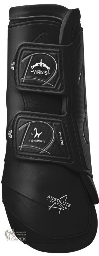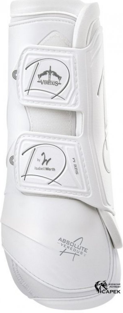 Dokonalá ochrana zadních nohou koně - speciálně navrhnutá pro drezurní práci. vyvinuty ve spolupráci s Isabell Werth absolutní kvalita propojená s elegantním designem anatomicky tvarovaná skořepina pro maximální svobodu pohybu inovativní tvar a materiály pro nejlepší podporu šlach a vazů při práci polyflexní vnější skořepina (elastický polyuretan) pro účinnou ochranu proti nárazu vnitřní podšívka z neoprenu a lycry pro vynikající pohodlí při nošení ve všech podmínkách zapínání "Easy Strap" pro dokonalé uchycení a udržení ve správné poloze cena za pár Zákazníci hledají také: pracovní chrániče na drezuru, drezurní chrániče, Veredus Absolute drezurní kamaše
