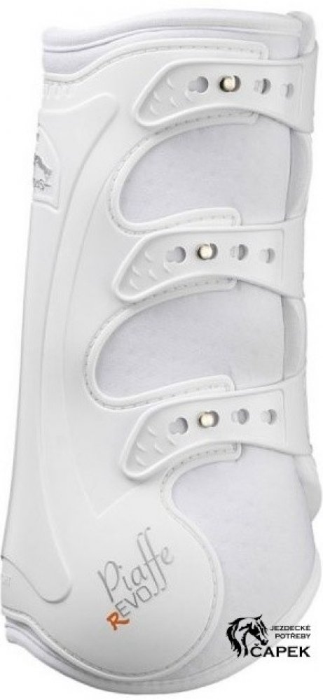 Drezurní chrániče Veredus Piaffe Revolution pro maximální drezurní výkon vašeho koně. anatomicky tvarovaná skořepina extra ochrana ve tvaru X v zadní části chrániče polstrované příjemnou pěnou EVA zajišťují maximální ochranu flexoru šlachy maximální opora při protahovaní a ohýbaní šlachy prodyšný neopren s mikrootvory (AEROX) inovativní zapínání na elastické pásky a rychlozapínání (cvočky/bajonety...