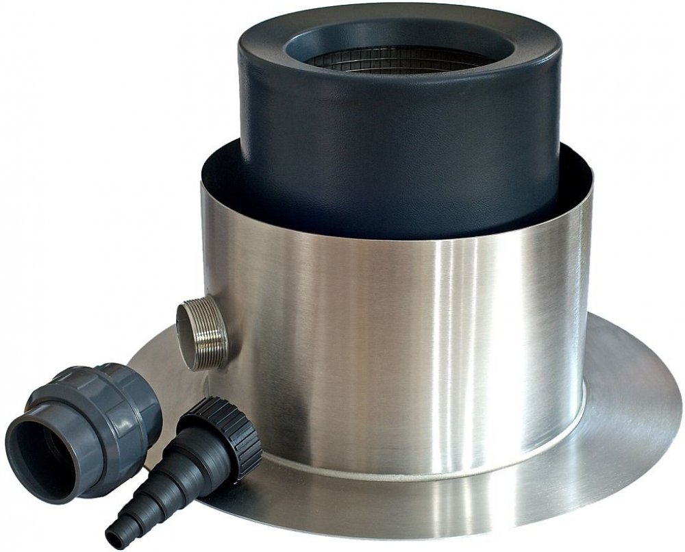 Tento skimmer je optimálně přizpůsoben tělu a nabízí průtoku dokonalý přívod vody (sání). Masivní VA 2" závitové připojení a ochranný kroužek proti štěrku a substrátu završují elegantní zpracování.