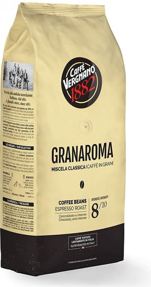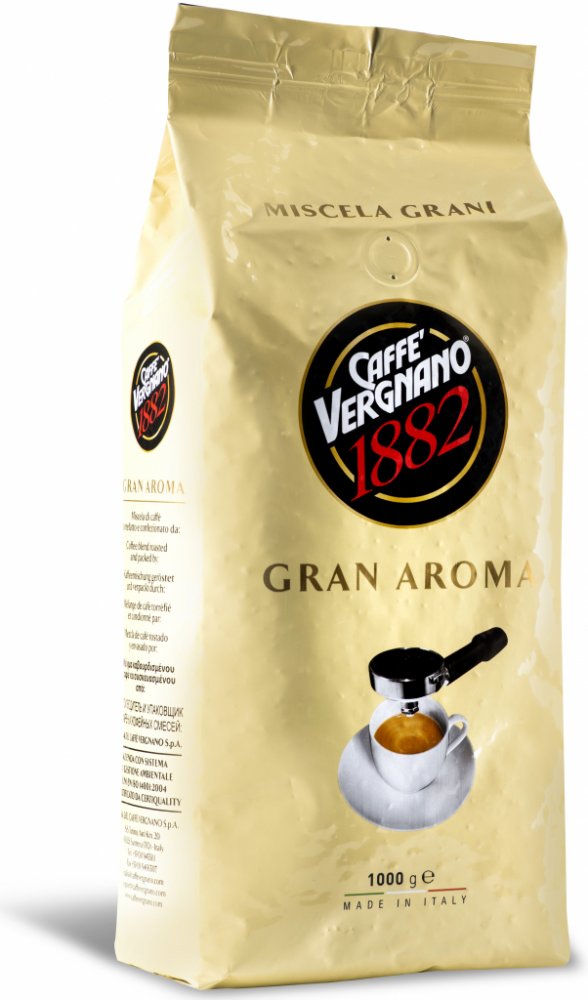 Zrnková káva Caffe Vergnano Gran Aroma 1 kg - Tato káva je dokonale vyvážená směs 60 % arabiky a 40 % robusty, která osloví všechny milovníky intenzivní a silné kávy s krémovou konzistencí a příjemnou čokoládovou příchutí. Caffe Vergnano Gran Aroma je ideální pro přípravu v běžných kávovarech, ale i jinými způsoby.