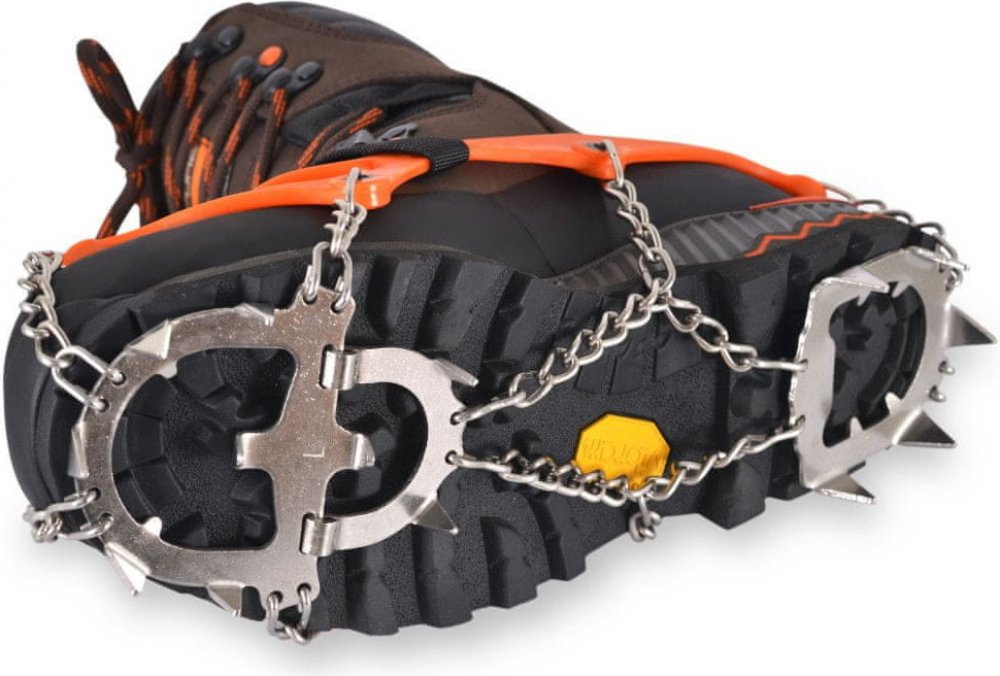 - 14 ostrých bodců rovnoměrně rozmístěných ve tvaru podkovy po celé ploše podrážky (tepelně zpracovaný povrch zajišťující vysokou kvalitu)