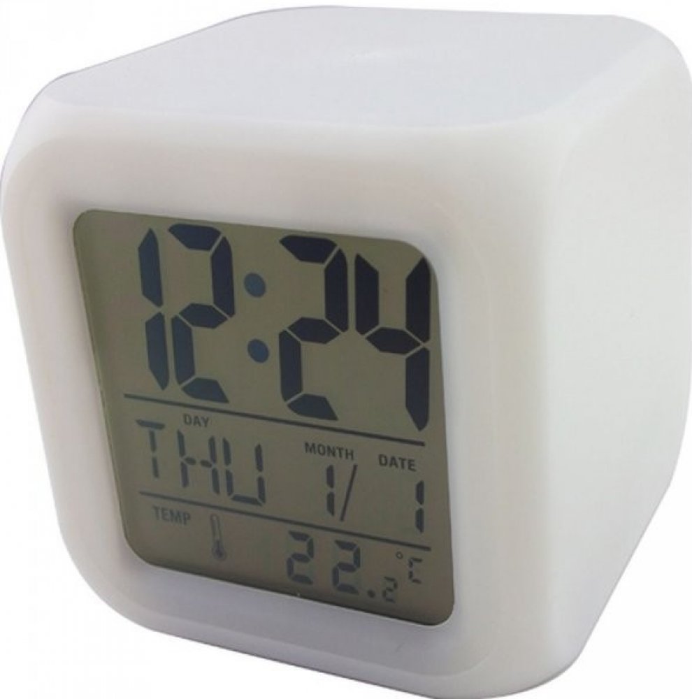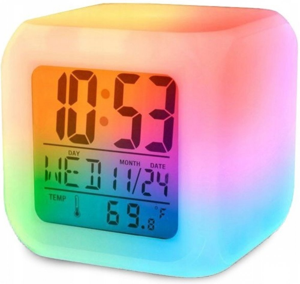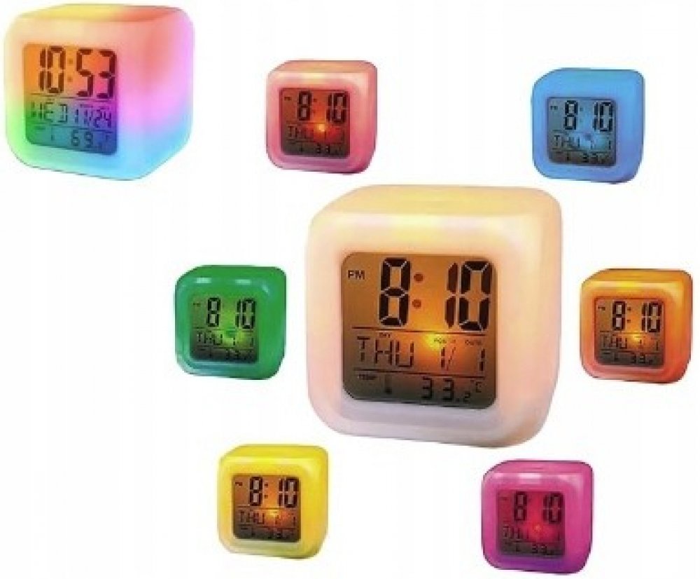 - Pogumovaný budík měnící barvy