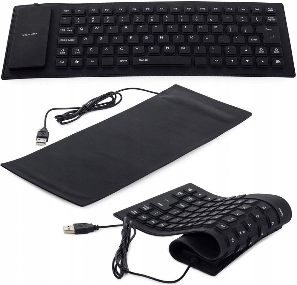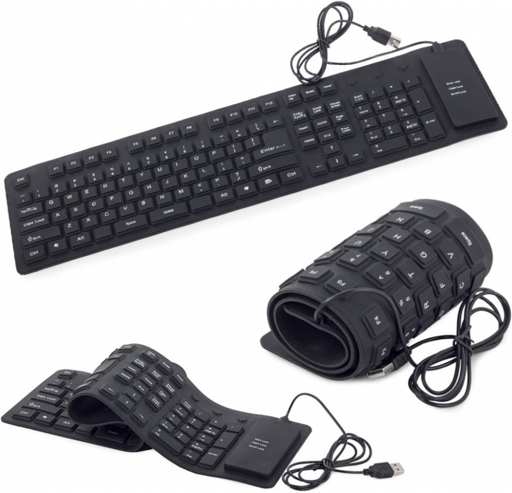 Silikonová flexibilní klávesnice, kterou můžete připojit přes USB k počítači. S touto inovativní klávesnicí můžete pracovat kdykoliv a kdekoliv, je odolná proti vodě, prachu a je ohebná. Tato pozoruhodná měkká silikonová klávesnice může být také srolována a použita jako cestovní společník k vašemu notebooku. Lze ji čistit a dezinfikovat proti bakteriím a virům, které z běžné klávesnice nelze odstranit. Robustní jednodílná konstrukce je skvělá pro kancelářské nebo domácí použití. Nízký profil a konkávní klíč konstrukce umožňuje snadné a přesné úhozy, ergonomický ploché provedení eliminuje negativní úhel namáhání zápěstí.Technická specifikace: Vyrobeno z vysoce kvalitních materiálů Non-slip Odolný vůči prachu a vodě Bezhlučná Komfortní Velmi tenká Snadná instalace, bez dalších ovladačů Vstupní port: USB Rozměry: 35,5 cm x 13,5 cm Délka kabelu: cca 125cm Barva: černá