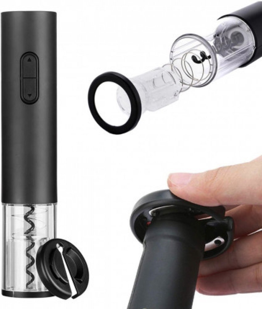 Stylový elektrický otvírák na víno s vývrtkou otevře láhev za 5–7 sekund pouhým stiskem tlačítka. Nabízí rychlé a snadné ovládání, tichý provoz a ergonomické neklouzavé držení. Hodí se na doma i jako elegantní dárek pro milovníky vína.Zapomeňte na námahu s klasickými vývrtkami. Tento elektrický otvírák na víno vám umožní komfortně a spolehlivě vyjmout korek z láhve během několika vteřin. Minimalistický design a kvalitní zpracování z něj dělají elegantní doplněk každé kuchyně či domácí vinotéky.Ovládání je maximálně intuitivní: nasadíte otvírák na hrdlo, stisknete tlačítko a korek je venku. Zařízení je napájeno 4 bateriemi AA a je kompatibilní s většinou vínových zátek o průměru 20–24 mm. V balení najdete také praktický řezač fólie pro čisté a bezpečné odstranění alobalu.Rychlé otevření láhve: 5–7 s stiskem tlačítkaTichý provoz a elegantní vzhled na každém stoleBezpečné a pohodlné použití díky ergonomickému úchopuSkvělý dárek pro každého, kdo si rád vychutná sklenku vínaSpecifikaceNapájení4× AA baterie (nejsou součástí balení)Kompatibilita zátekPrůměr 20–24 mmDoba otevření5–7 sekundProvozTichýErgonomiePohodlné, neklouzavé drženíDesignElegantní, moderníRozměry22,5 × 4,5 cmPříslušenství v baleníŘezač fólie, originální baleníKód výrobku07092Vhodné použitíDomácnost, večírky, dárkový tip