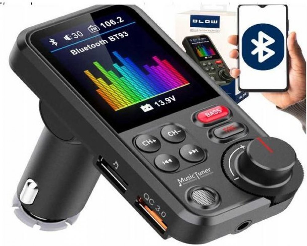 Zařízení má port USB 3.0 pro rychlé nabíjení, slot pro TF kartu a také druhý port USB pro přehrávání hudby z flash disku. Čitelný a barevný LCD displej usnadňuje ovládání a vestavěný handsfree umožňuje bezpečné telefonování bez nutnosti držet telefon v ruce. Vysílač podporuje jak auta (12 V), tak nákladní automobily (24 V), což z něj činí univerzální řešení pro každého řidiče.
