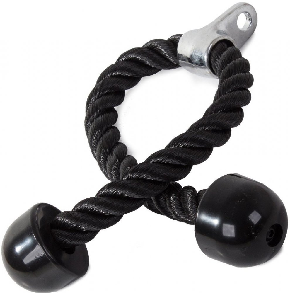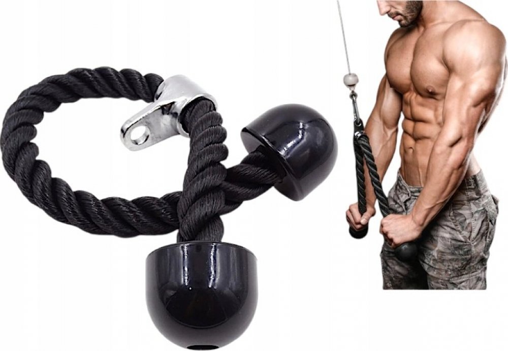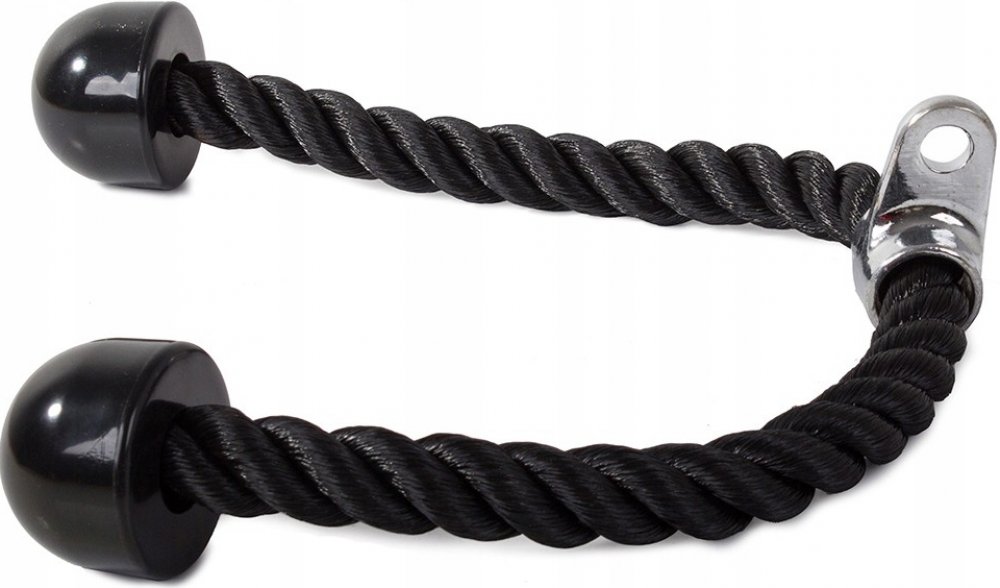 LINE ROPE HANDLE FOR ATLAS EXTRACTION FOR TRICEPSTricepsové lano je odolný výrobek z hustě tkaných nylonových vláken. Lano poskytuje možnosti pro mnoho kombinací cviků. Na koncích lana jsou namontovány pryžové průchodky, které umožňují jistý úchop a bezpečnost prováděných cviků.Tricepsové lano je jedním z nejoblíbenějších přístrojů pro kulturistická cvičení paží a břišních svalů. Zařízení skvěle funguje jako přístroj pro silový trénink, stroj a nástavec na atlas.Pomocí lana lze provádět celou řadu cviků, např. stahování lana, shyby trupu v kleče, francouzský lis, tlaky nad hlavou atd.Lano je vyrobeno z odolných materiálů, jeho maximální nosnost je 200 kilogramů. Díky univerzální kovové rukojeti jej lze připevnit k jakémukoli hornímu nebo dolnímu výtahu.
