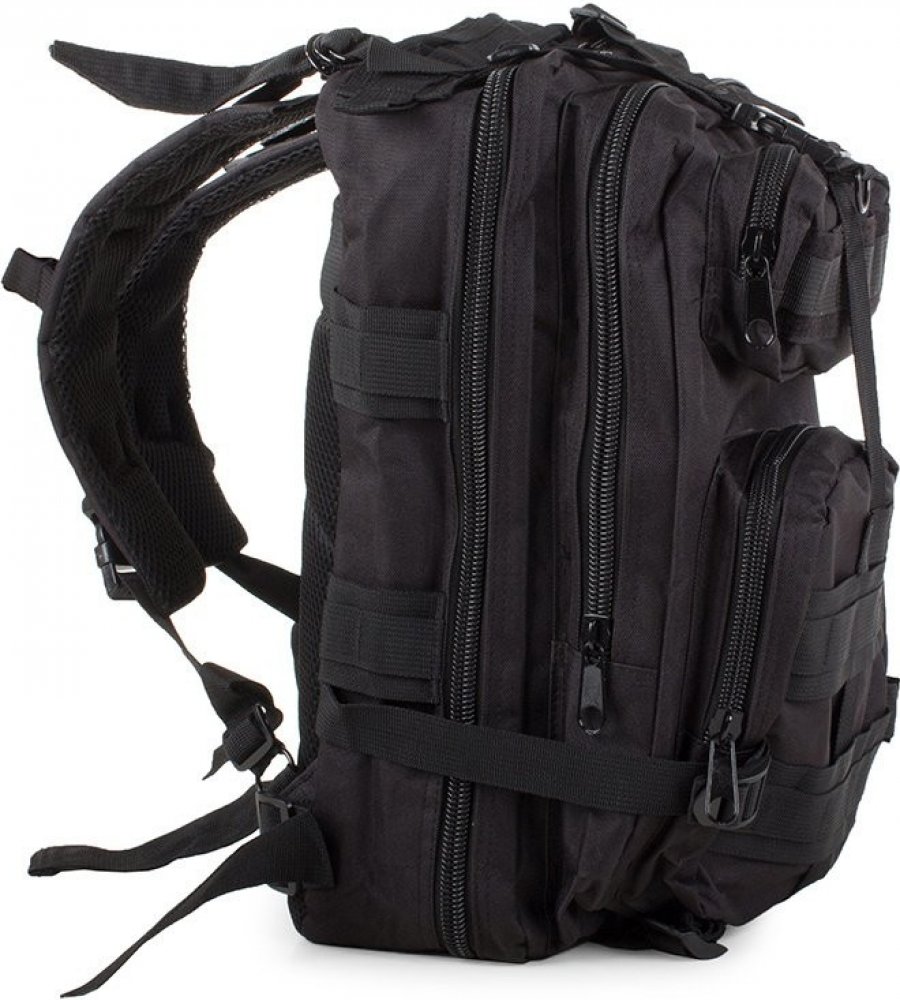 Taktický vojenský batoh na prežitie 30l, čierny Turistický batoh vo vojenskej tematike osloví nadšencov horolezectva ale aj vojenských nadšencov. Systém mnohých praktických vreciek a priehradiek. Perfektné v bojových podmienkach, odporúčané pre milovníkov extrémnych športov a každého, kto trávi čas aktívne. Materiál batohu je vodeodolný, takže môžete vyraziť na výlety aj v nepriaznivom počasí. Je ...