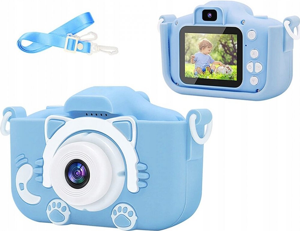 DIGITÁLNÍ FOTOAPARÁT PRO DĚTI S HRAMI FOTOAPARÁT HRY KOČIČKA MODRÁ
