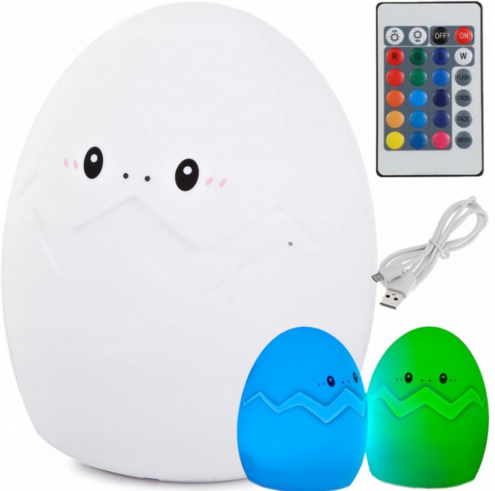 Rozkošné noční světlo ve tvaru vajíčka je ideálním dárkem pro chlapce a dívky. Zapadne do každého dětského pokoje a vytvoří hřejivou a klidnou atmosféru. Vajíčko je vyrobeno z měkkého, na dotek příjemného silikonu, a je odolné proti nárazu a rozdrcení, takže dlouho vydrží jako lampička a měkká hračka, kterou si můžete vzít s sebou do postele, až budete usínat. Určitě se bude hodit dětem, které se bojí nebo nerady usínají ve tmě. Barvy světla se mění stisknutím příslušné funkce na dálkovém ovladači nebo dotykem/poklepáním. Dálkové ovládání je ideální pro kojící matky, které mohou světlo snadno ovládat během kojení. Světlo lze pro nabíjení připojit ke standardní nabíječce, počítači nebo powerbance. Snadno se čistí, silikonový kryt lze sejmout a umýt pod kohoutkem. Výrobek je bezpečný, nemá ostré hrany, silikon je pevný a odolný proti roztržení. Klíčové vlastnosti Verk noční RGB lampičky dotykové vajíčko, USB, s dálkovým ovládánímFunkce stmívání světla a rozjasnění světlaBlesk -...