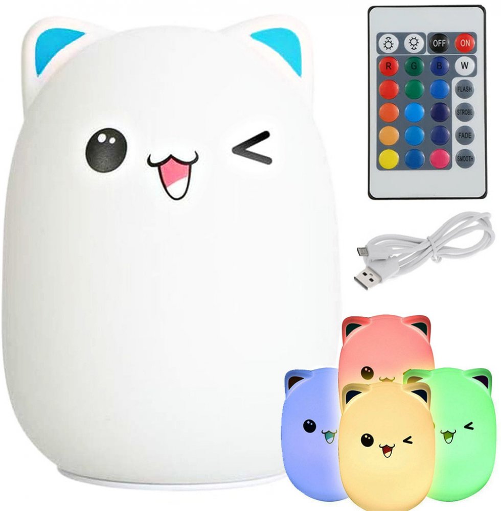 Noční RGB lampička dotyková kotě USB 1200mAh s dálkovým ovládáním