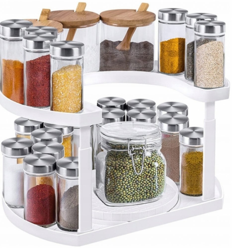 Univerzální organizér na koření je perfektní věc, která vám pomůže udržet pořádek v kuchyni. Poskytne snadný a rychlý přístup ke koření, které hledáte.Organizér se otáčí kolem své osy, navíc lze libovolně otáčet i policí uprostřed stojanu.Výšku organizéru lze nastavit od 17cm do 20cm.TECHNICKÉ SPECIFIKACE:✅ Organizér na koření a další drobnosti✅ Umožní vám udržet v koření pořádek✅ Poskytuje snadný a rychlý přístup k hledané položce✅ Snadná a rychlá montáž✅ Nastavení výšky stojanu✅ Dvě úrovně✅Organizér je otočný o 360 stupňůROZMĚRY:✅ Nastavitelná výška: 17-20 cm✅ Celkový průměr: 32,5 cm✅ Průměr otočného pole: 16cm