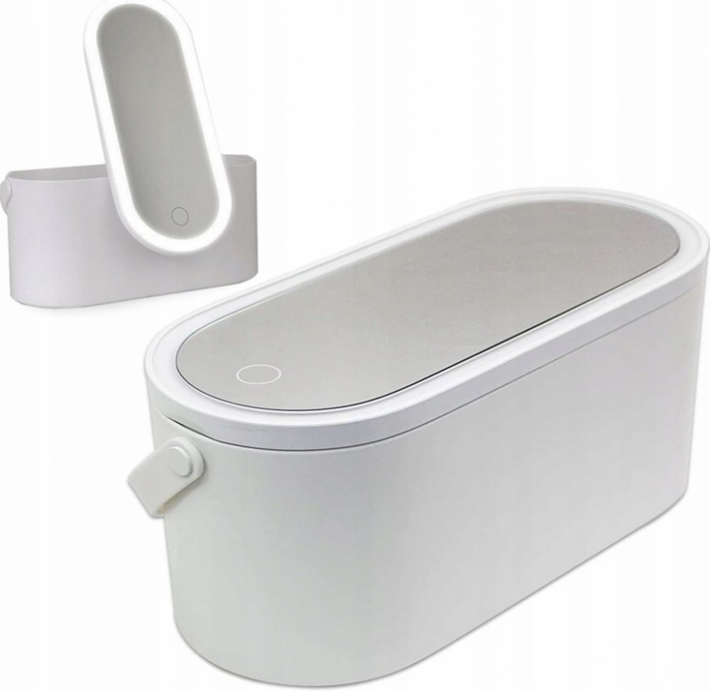 Organizér na make-up je vybaven osvětleným zrcadlem, které slouží jako horní víko. Zrcadlo je napájeno baterií, nabíjí se pomocí USB kabelu.