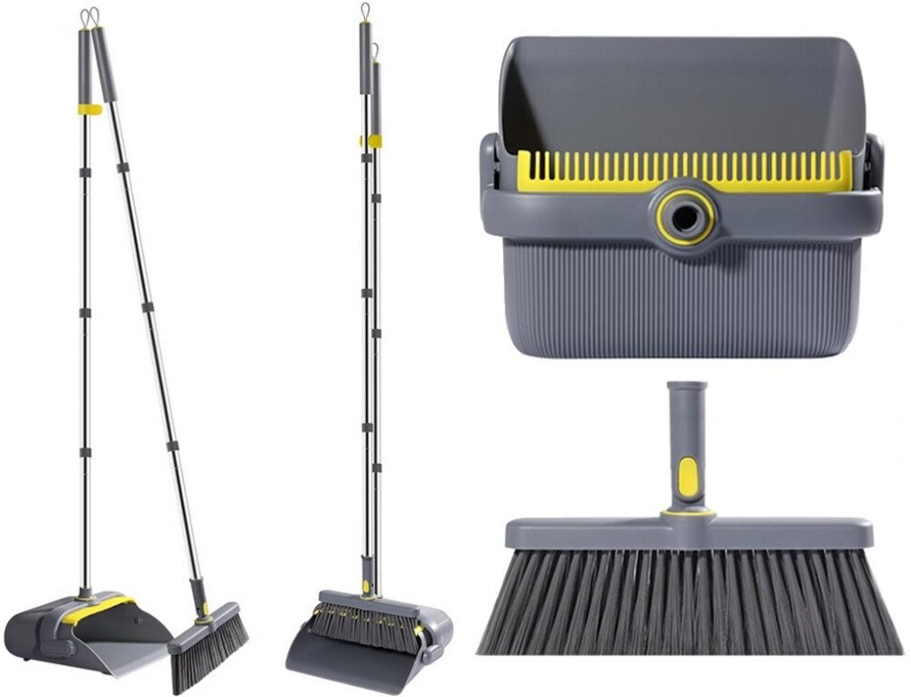 Tato praktická sada kombinuje kartáč na zametání, mop či stěrku na mokré či suché čištění a lopatku – ideální pro každého, kdo chce mít jeden nástroj místo tria nářadí. Podle parametrů produktu je tyč nastavitelná až do délky cca 125 cm, což ocení nejen osoby s bolavými zády.