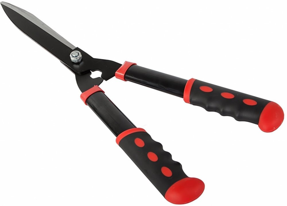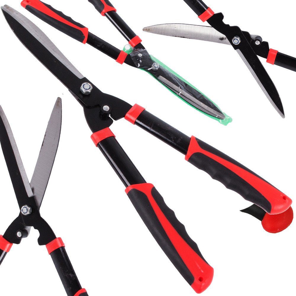 Zahradní nůžky jsou speciální zahradní nůžky, které jsou určeny pro stříhání živých plotů a jiných zahradních rostlin. Tyto nůžky mají dlouhé, rovné ostří, které vám umožní zastřihnout velké množství větví najednou. Vnější hrany čepele jsou mírně zakřivené, aby se usnadnilo stříhání podél tvaru živého plotu.SPECIFIKACE:
